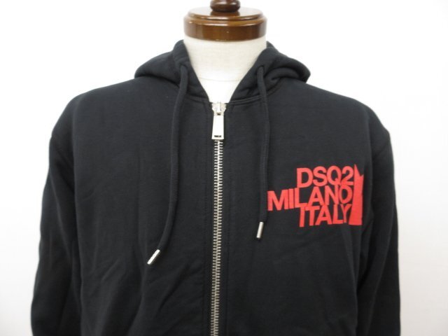 超美品【DSQUARED2 ディースクエアード】 ダブルジップ フード付きパーカー (メンズ) sizeS ブラック×レッド イタリア製 ◇33MT6258◇