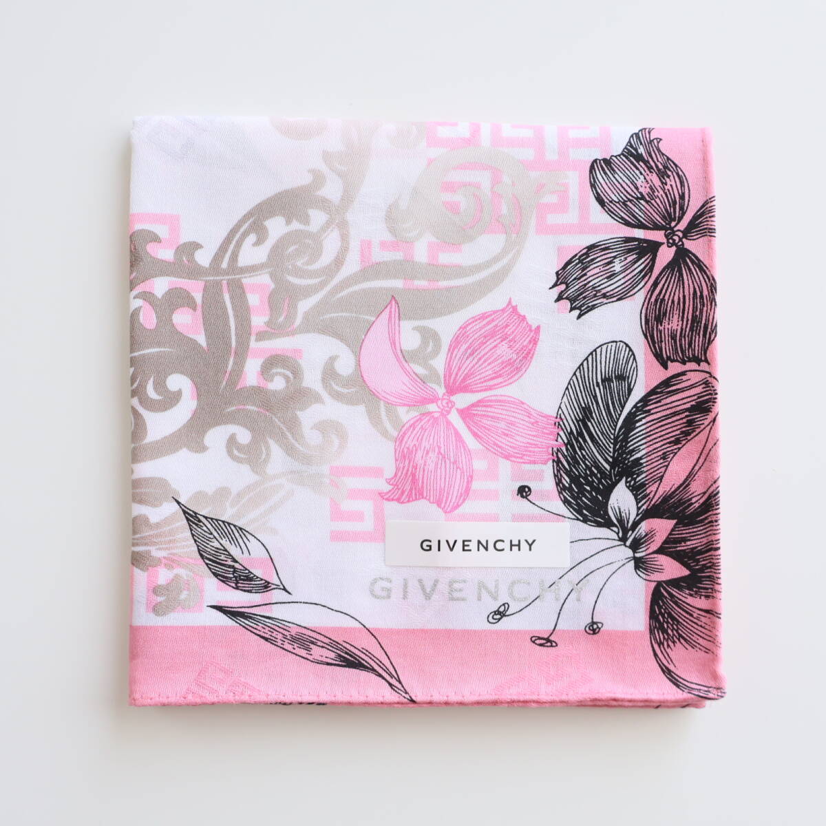 ご覧いただきまして誠にありがとうございます。 未使用 GIVENCHY ジバンシィ 大判 ハンカチです。 サイズ 約57cm×約57cm 素材 綿100% ※保管による僅かな傷や汚れ、シワ等はご了承お願いいたします。 | ||