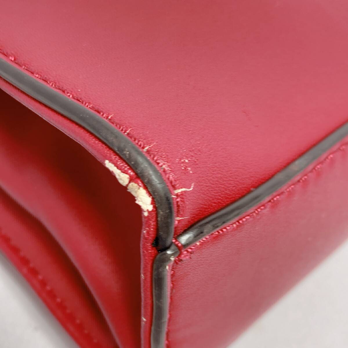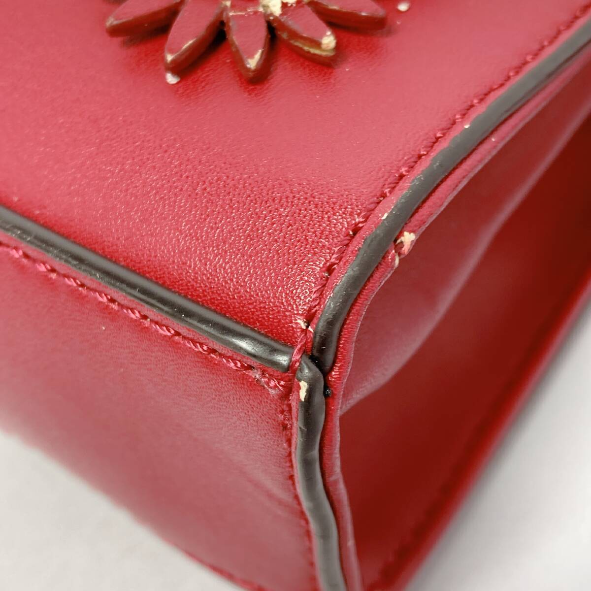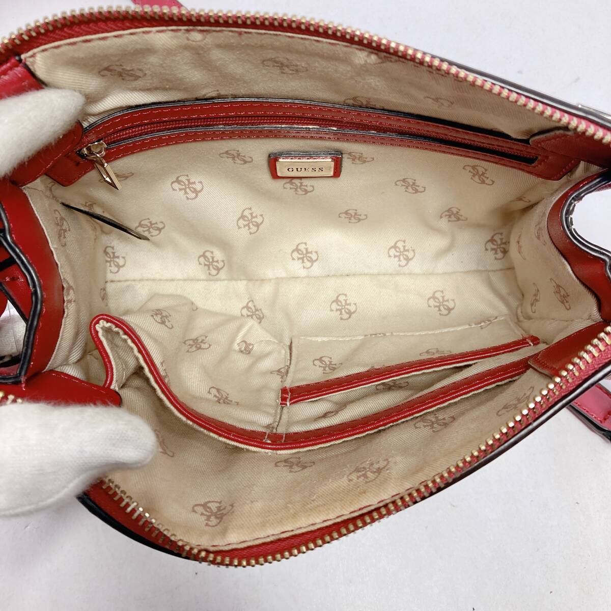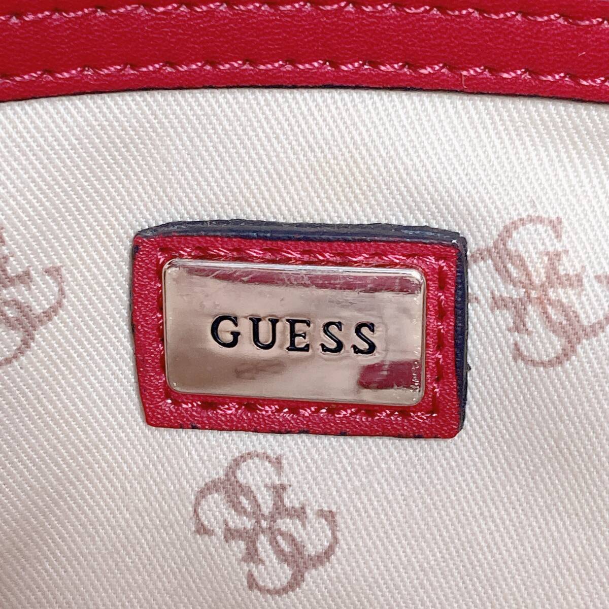 Y623 GUESS ゲス ショルダーバッグ レディース レッド 赤 花柄 フラワー レザーバッグ シルバー チェーンショルダー ファスナー