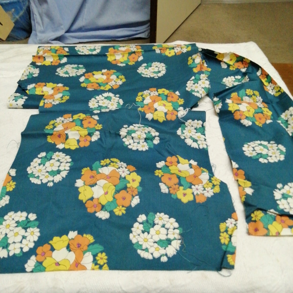 ハギレ 布 昭和 アンティーク 手芸 縫物 はぎれ 花柄 送料185円可能