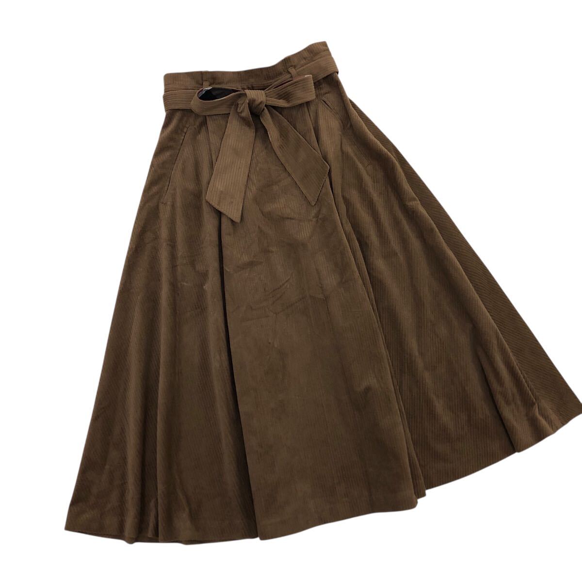 8m644-19 BLUE LABEL CRESTBRIDGE ブルー レーベルクリストブリッジ コーデュロイ フレア スカート ボトムス ブラウン レディース 36