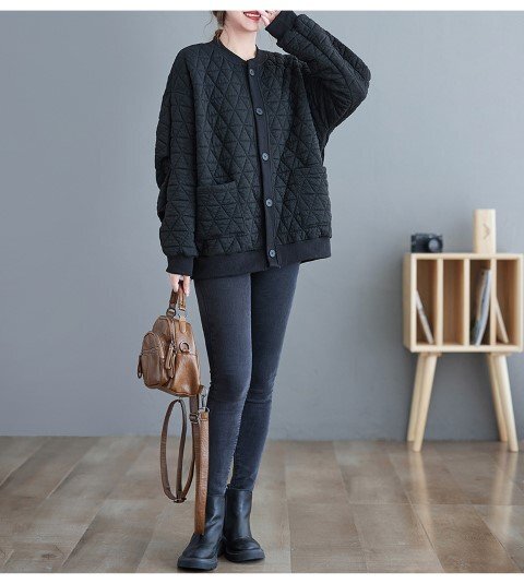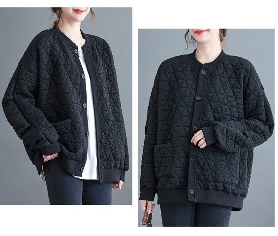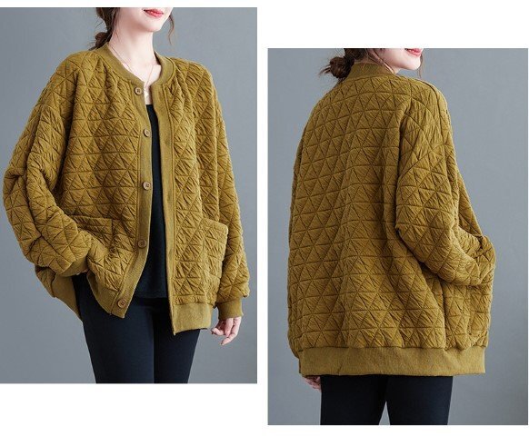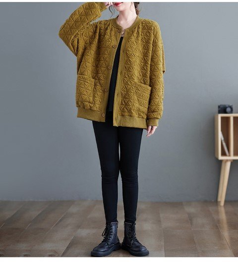 ・お顔回りがスッキリ見えするノーカラー。ノーカラーなのでフードのついたトップスやハイネックなどとのレイヤードコーデも楽しめます。
