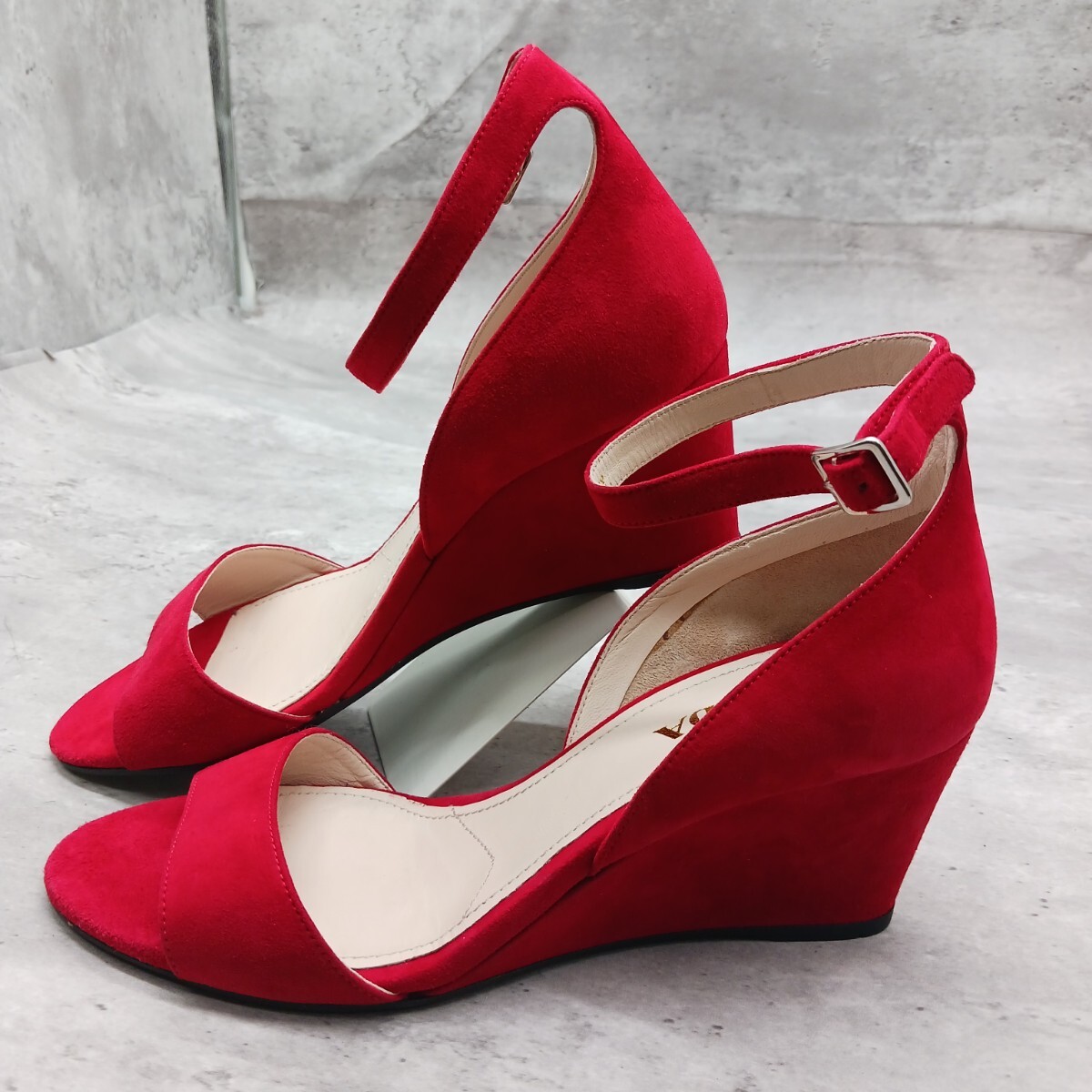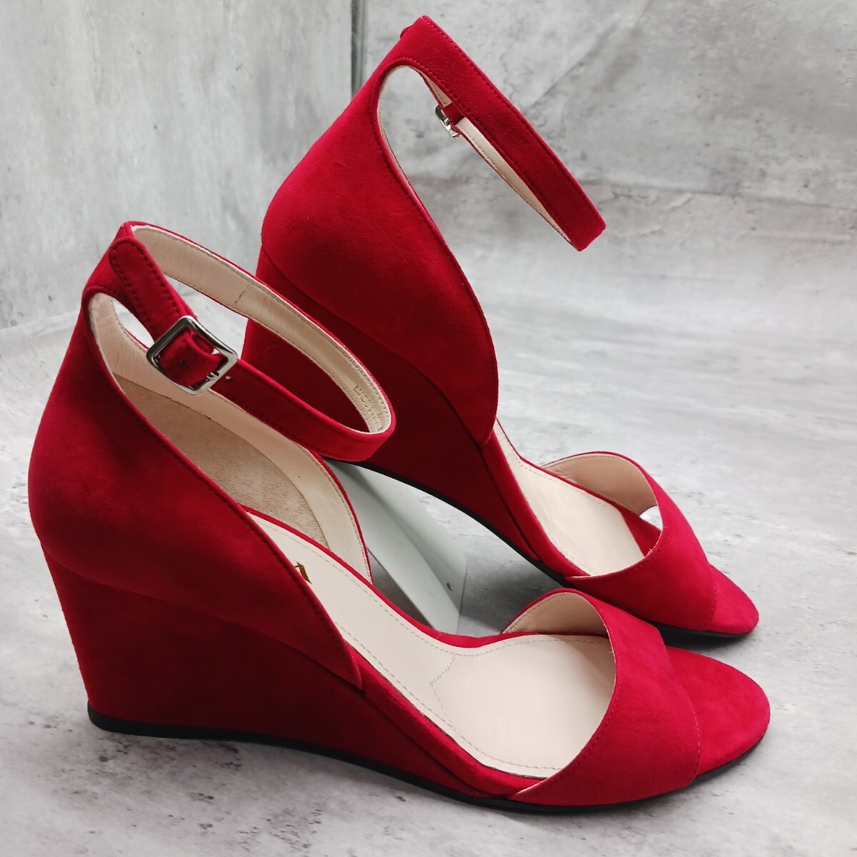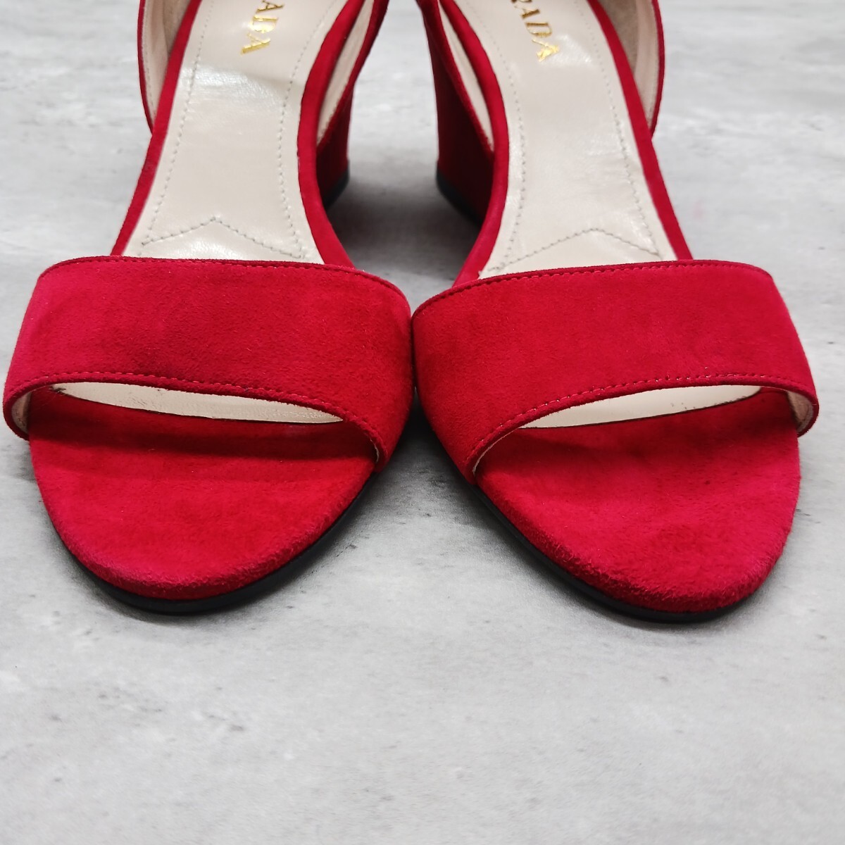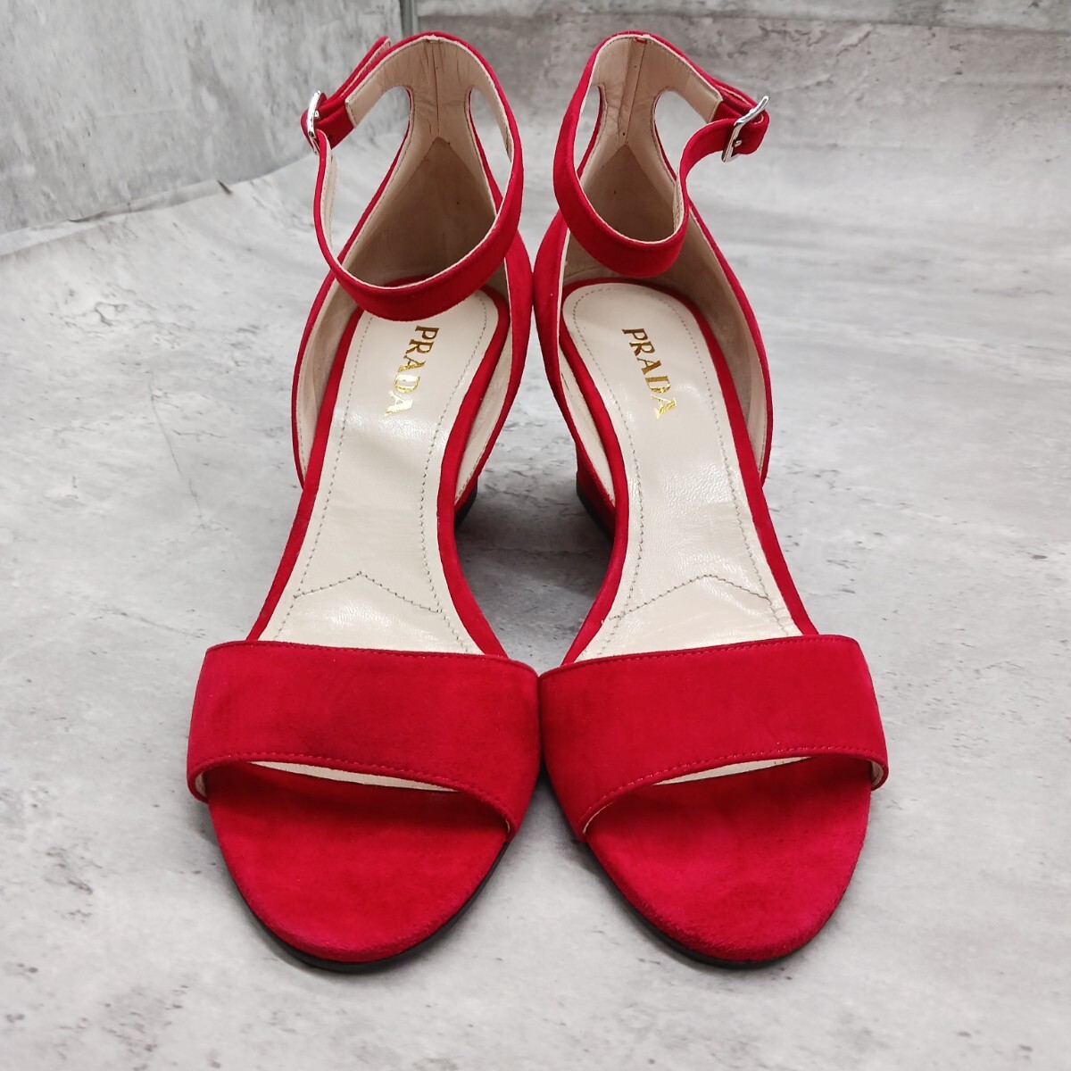 未使用級 参考定価8万円 プラダ レディース スウェード ウェッジサンダル レッド 38