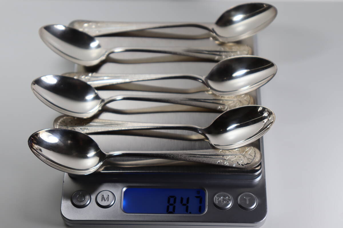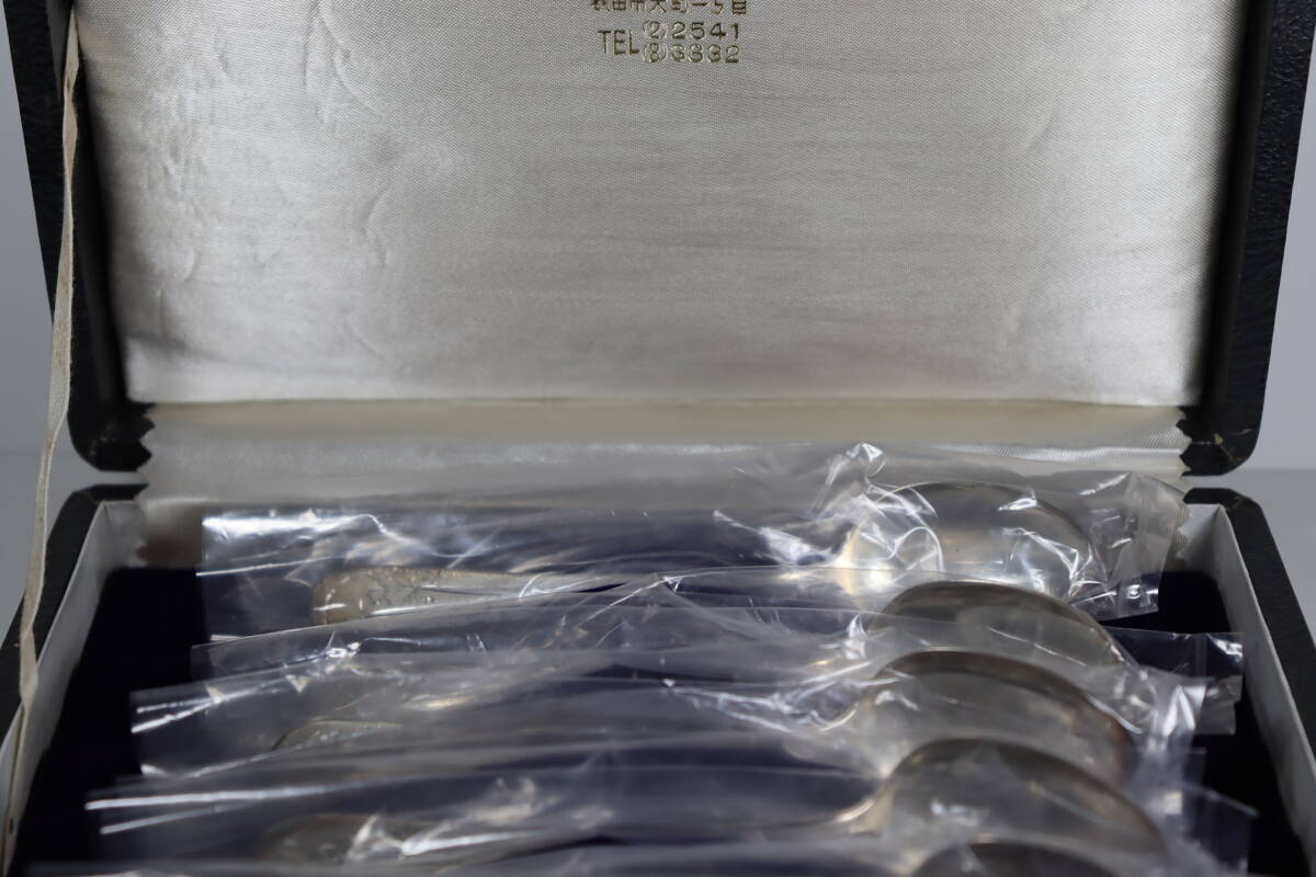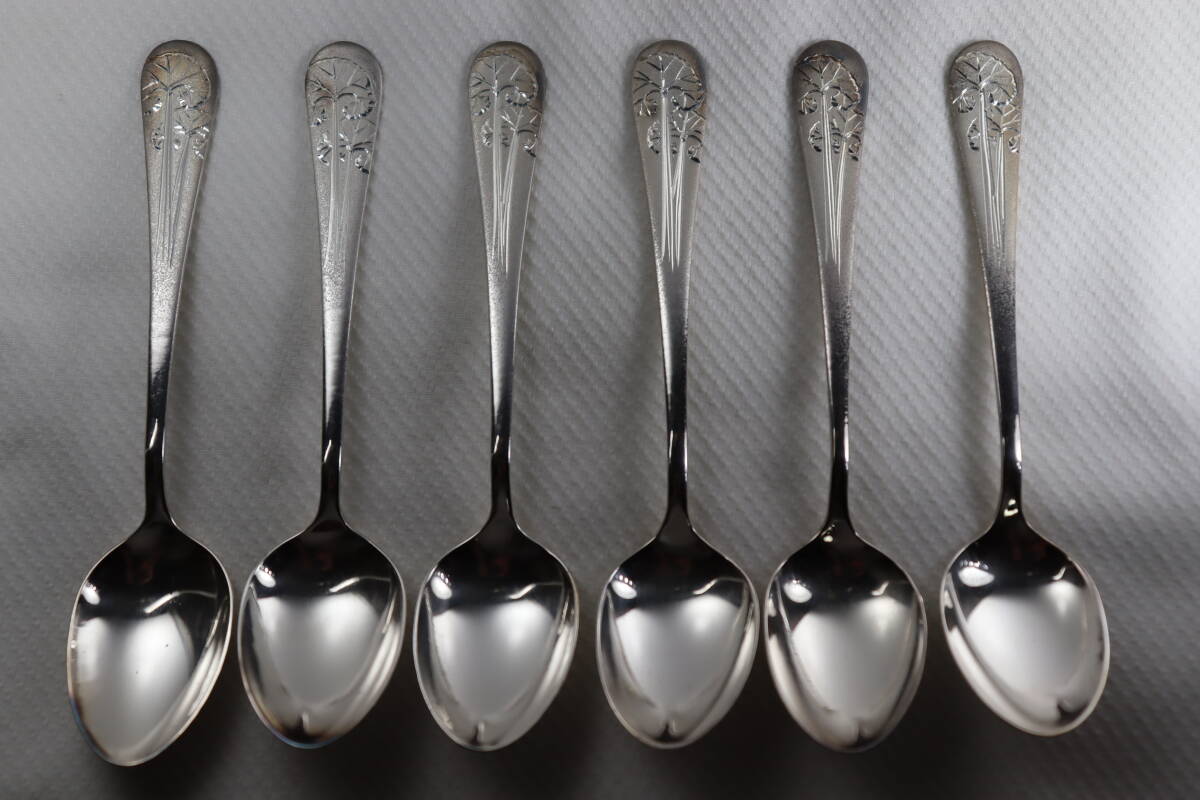 国産純銀スプーン6本組◆秋田「竹谷製」◆純銀保証品◆非常に見事な『片切彫り』の装飾!◆刻印は『純銀竹谷製』◆共箱◆ゆうパケット410円 |