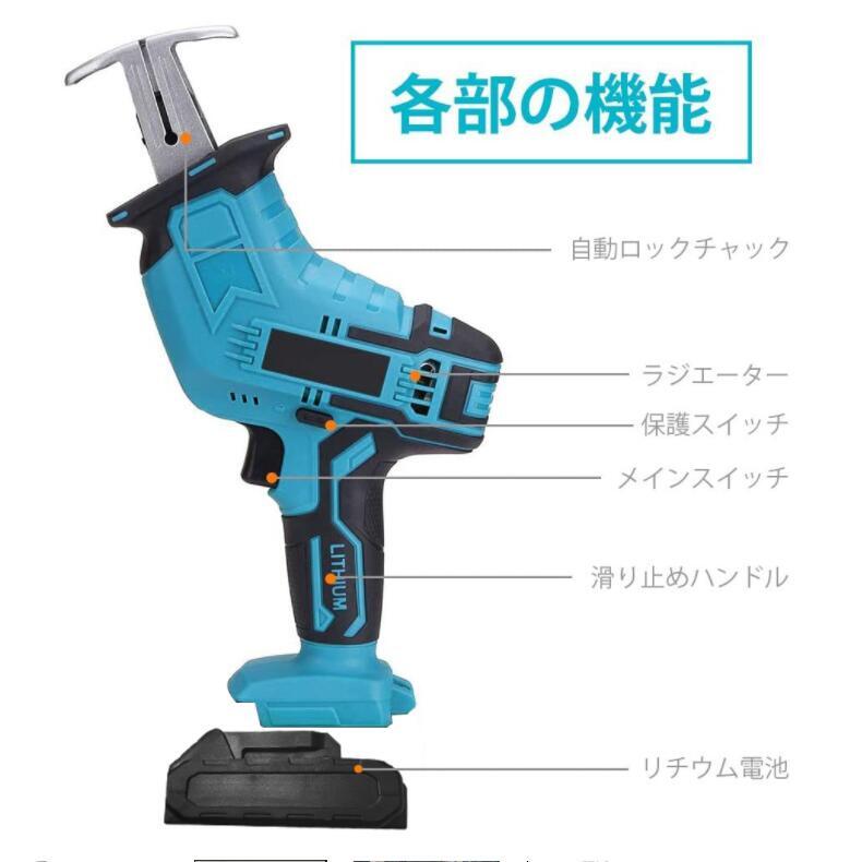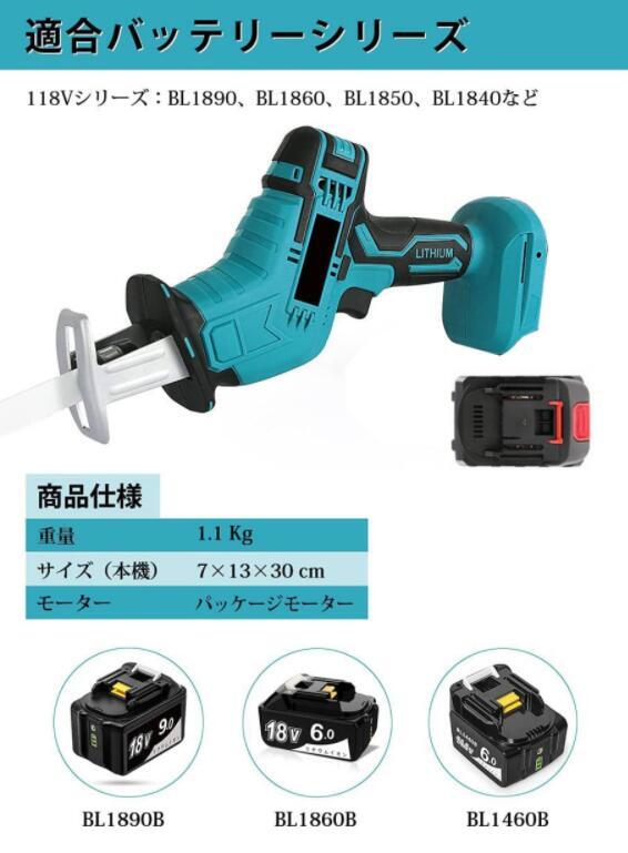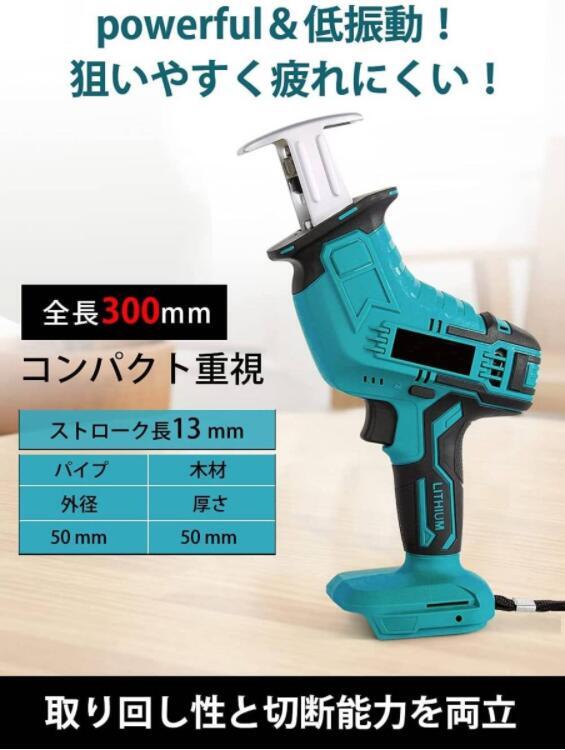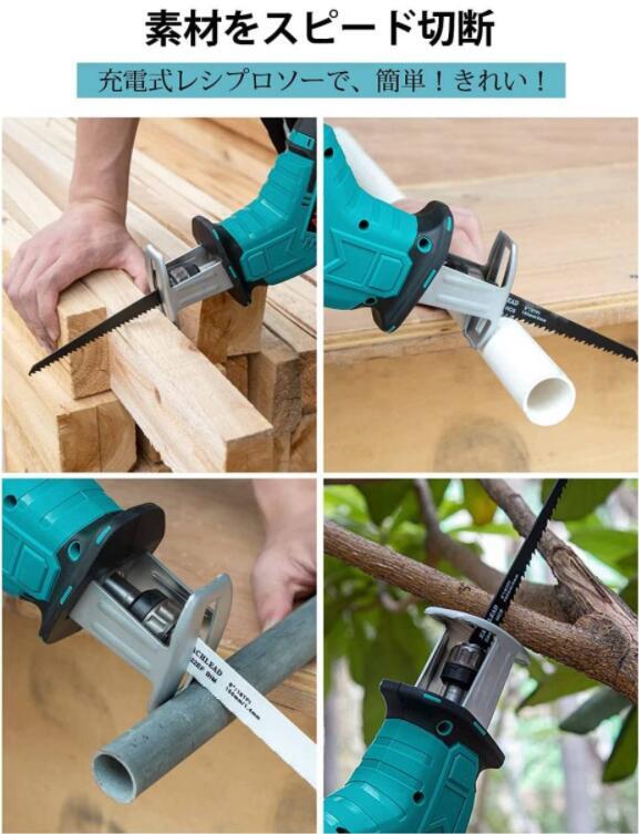 電動ノコギリ レシプロソー 充電式 コードレス 充電式のこぎり 21V 無段変速 庭木剪定 金属切断 木工切断 マキタ バッテリー併用