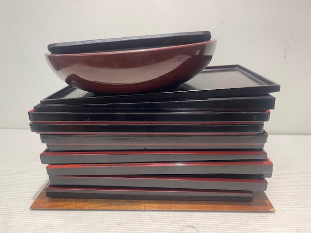 ★菓子鉢直径30㎝高さ8㎝ お盆ワイド35㎝4枚 お盆ワイド36㎝6枚 敷物小判型42㎝ 長方形42㎝ 合計16点
