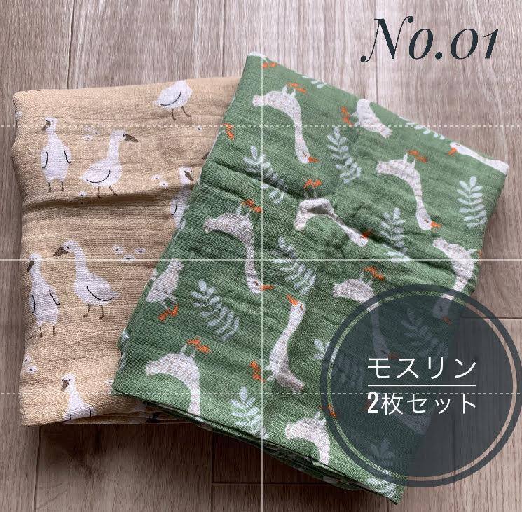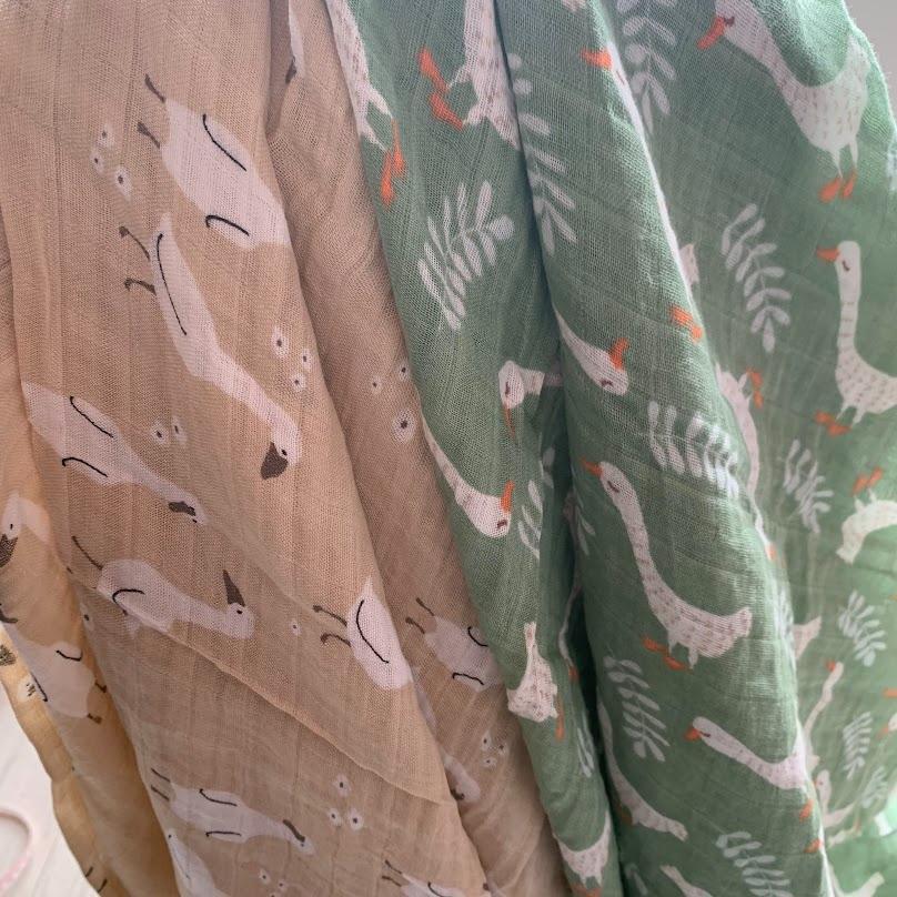 ■新品■モスリン【120㎝×110㎝】№01【2枚セット】【COTTON BAMBOO】おくるみ  ガーゼ【あひる】ベビー あかちゃん ブランケット