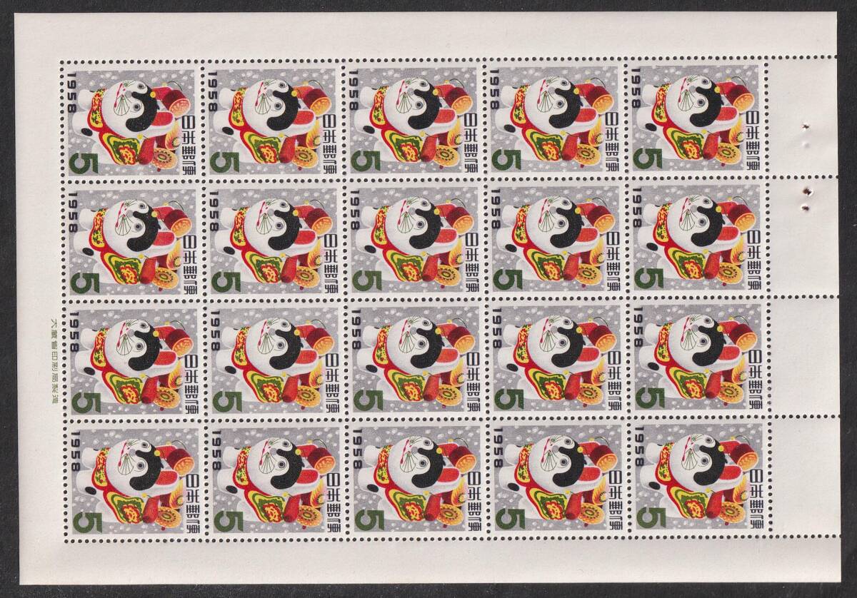 ★早期終了★昭和33年年賀/犬はりこ5円1シート/1957年発行