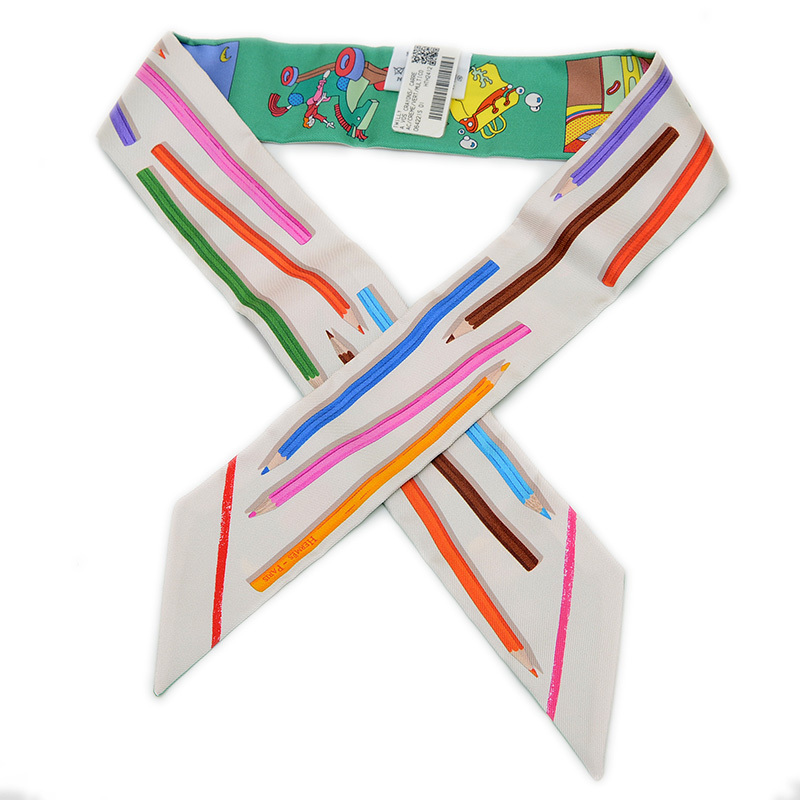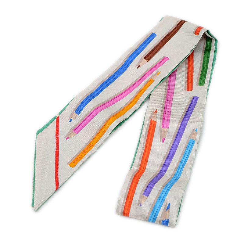 | 商品特徴 | 色鉛筆で描かれたような繊細なイラストが特徴のスリムなシルクスカーフです。クレーム(クリーム)、ヴェール(グリーン)、マルチカラーの柔らかな色合いが、遊び心と上品さを融合させたデザイン。バッグのハンドルに巻いたり、首元や手首に巻いたりと、様々なアレンジで装いに彩りを添える逸品です。 |