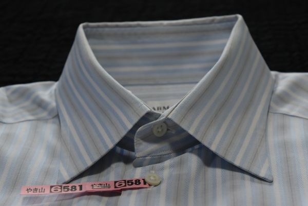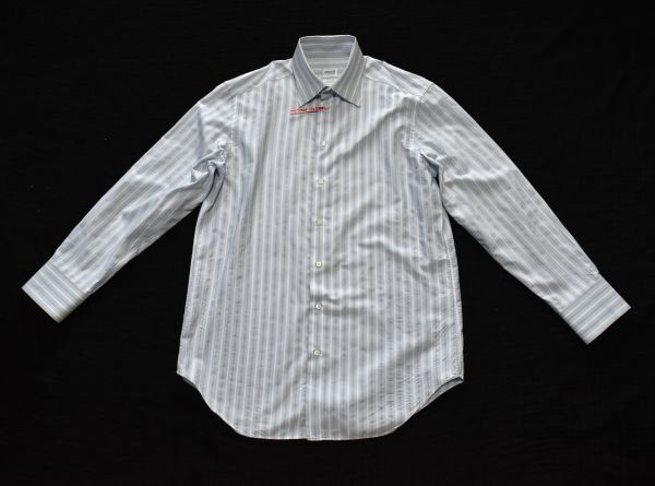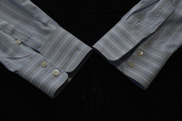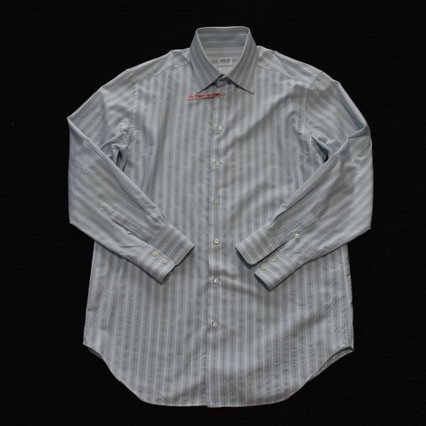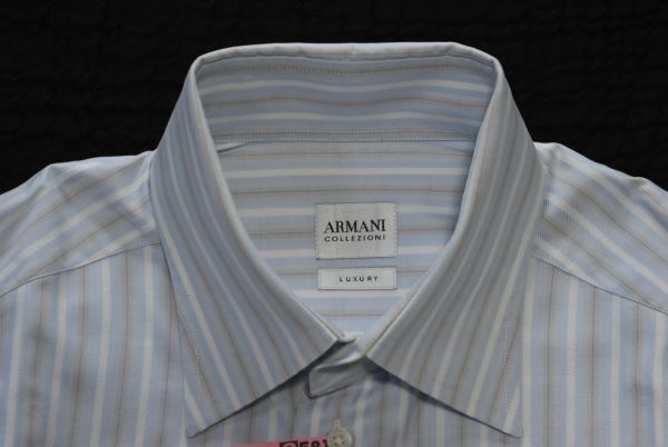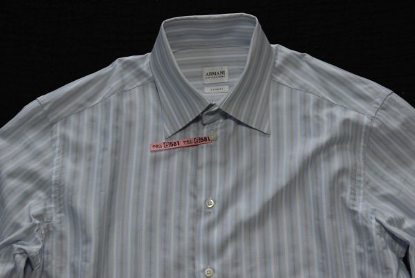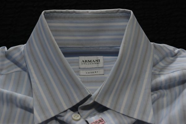 ★ARMANI COLLEZI★アルマーニコレツォーニ★ お洒落なブルー白ベージュのストライプ 長袖シャツ・ワイシャツ 40 15 3/4 ※M〜L