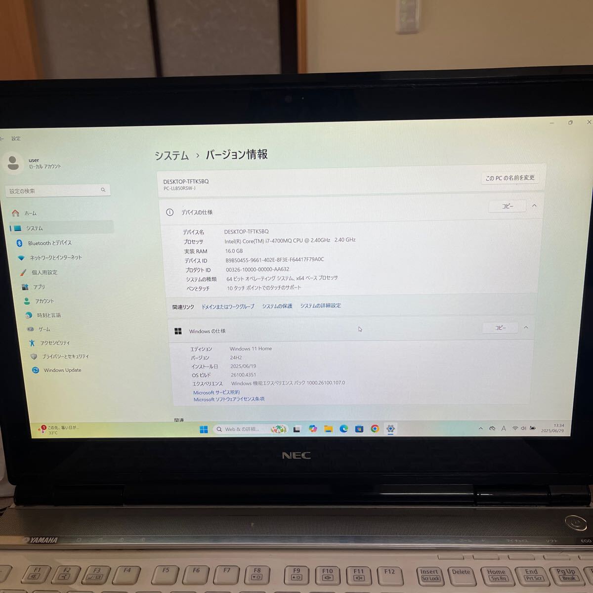 ○ OSは、Windows 11HOME(24H2)で、ライセンス認証済みです。その他、CD、DVD、BD再生ソフト、ワードエクセル統合ソフトlibre office等インストール済みです。