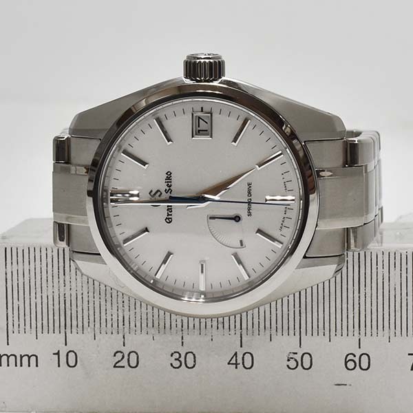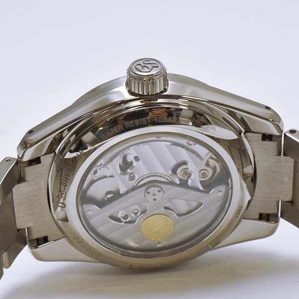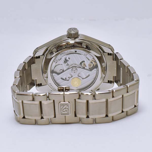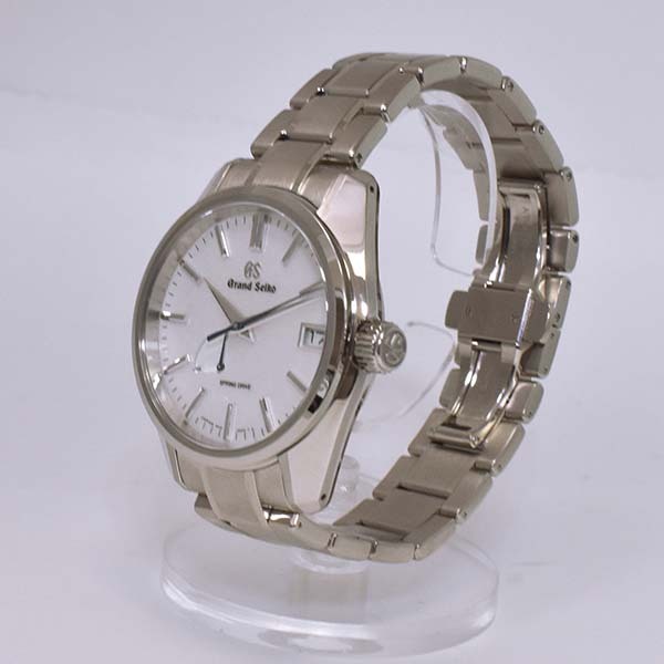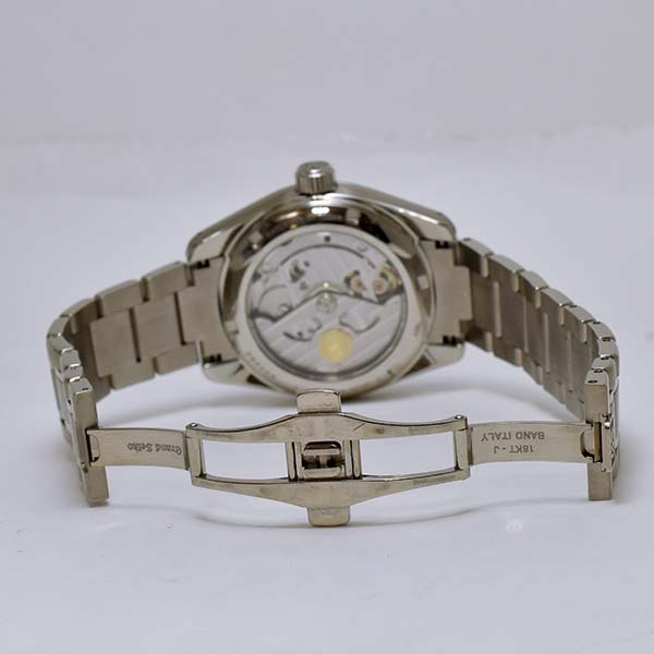 デイト表示、パワーリザーブ表示つきのスプリングドライブ搭載メンズウォッチ。18金ホワイトゴールド製金無垢。