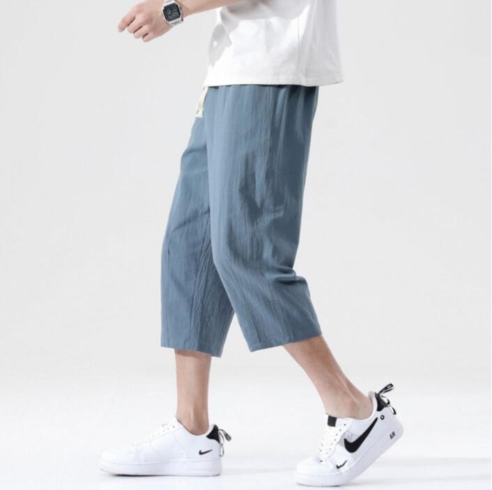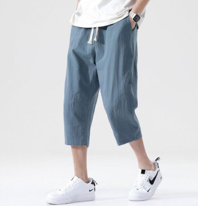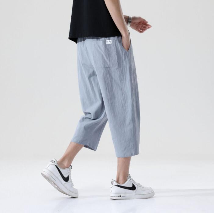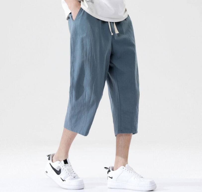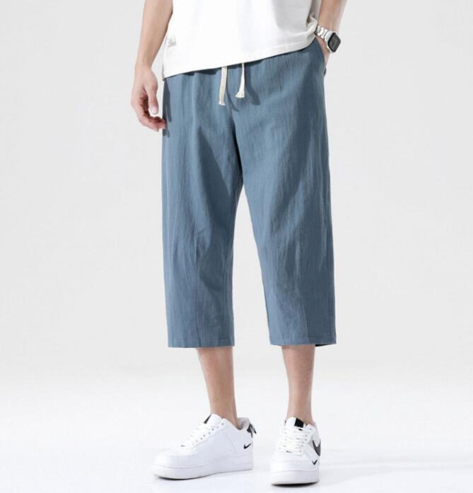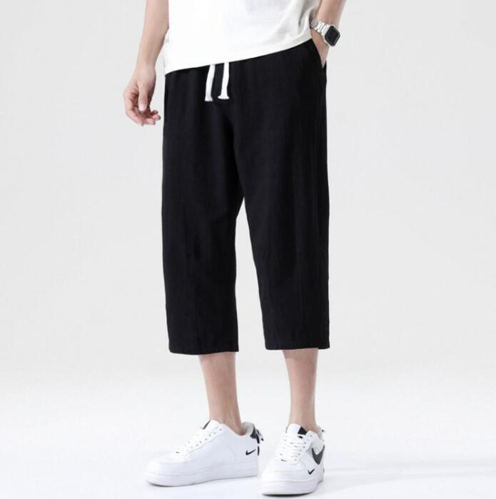 新品サルエルパンツ メンズワイドパンツ 7分丈 無地 涼しい イージーパンツ ジョガーパンツ 薄手 麻綿風ズボン カジュアル ボトムス 2XL
