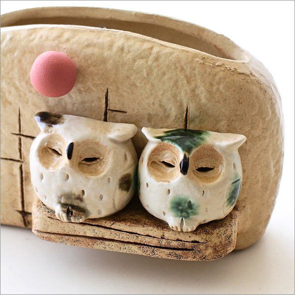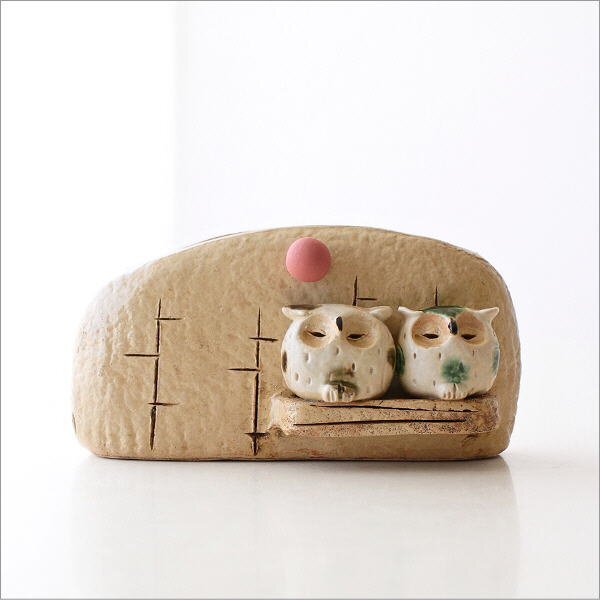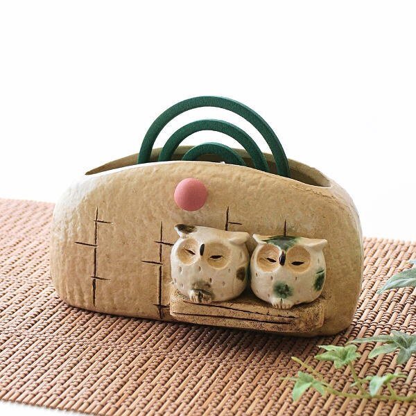 | 和のインテリアに良く似合う 陶器の蚊遣りです ふくろうが2羽止まっていて 線香の煙と共に 静かに夜が流れていきます 針金棒に線香を引っ掛けてセットします 線香を焚かない季節は サイドの穴に棒を挿して 保管しておくことが出来 花瓶やレター入れとしても使えます 商品名 :陶器の蚊遣り ふくろう 商品番号 :mkn2035 全体サイズ(cm) :幅19×奥行9×高さ10 重量 :530g 材質 :陶器 生産国 :日本(瀬戸) ※針金棒の歪みはご容赦ください ※ディスプレイによる色の違いはご了承下さい |