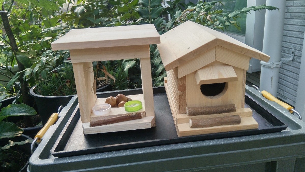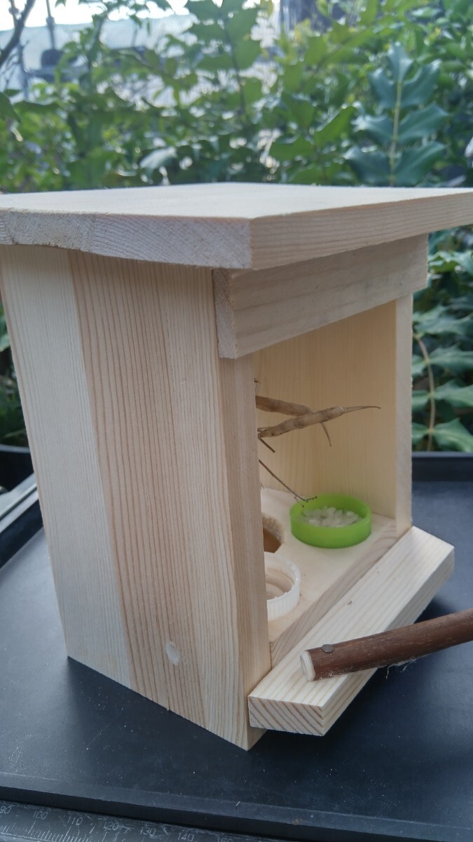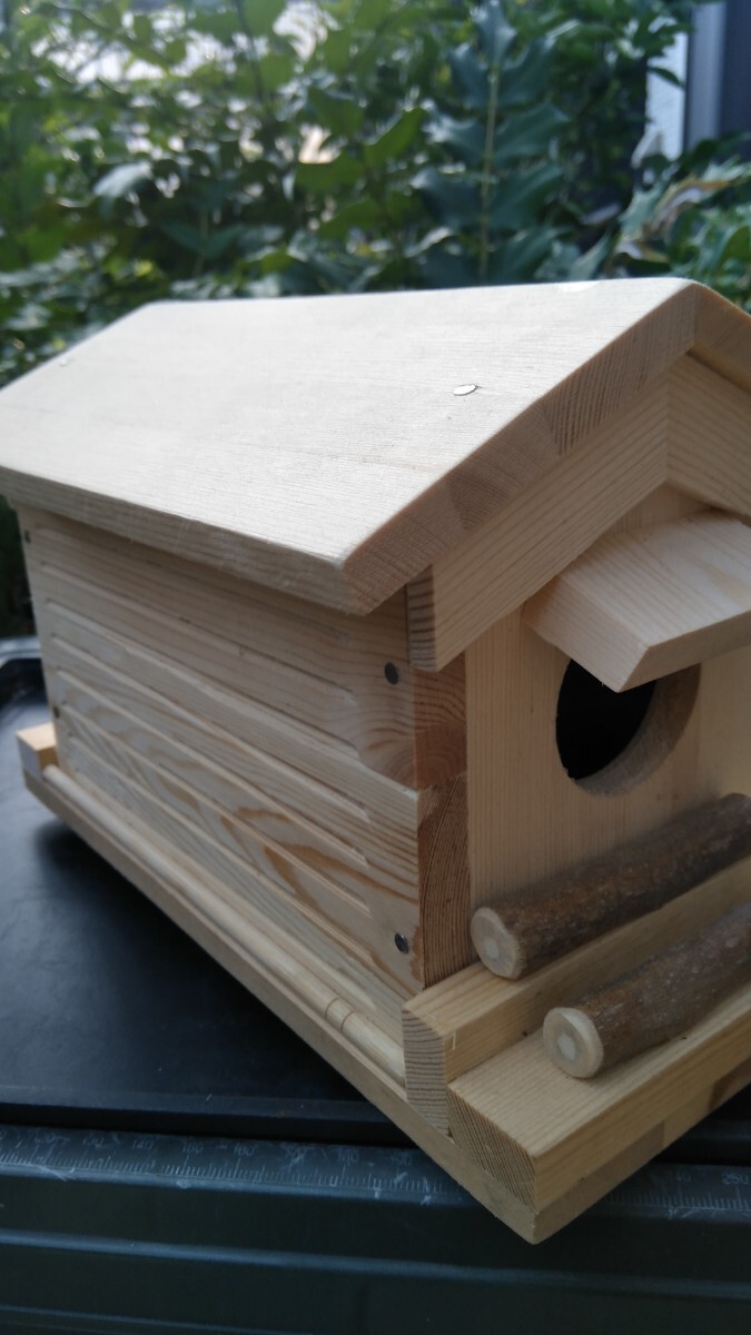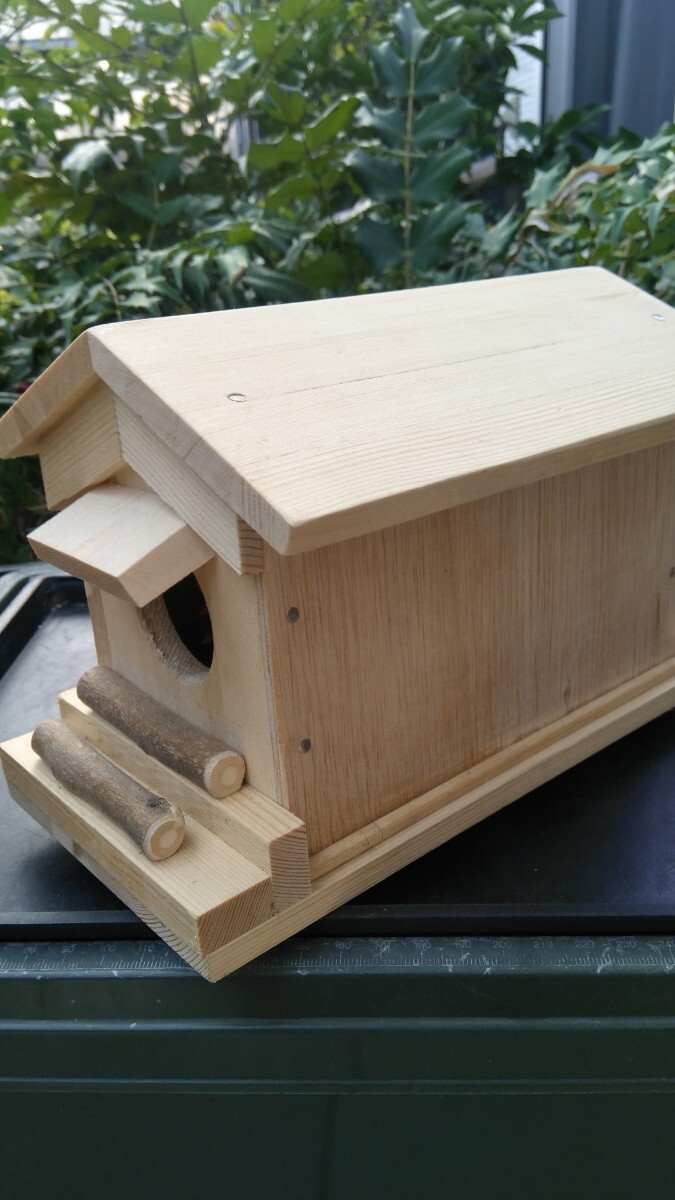 ①小鳥の巣箱(ベツトタイプ)ECO溝匠左側8本入りの簡単説明。小鳥が自然を感じとれる通気性の良いECO溝が左側8本入った内装にベツトのスズメ位の大きさの小鳥用の巣箱です。大きさ 内寸約80ミリΧ150ミリの長方形 床面から屋根裏まで約110ミリ 小鳥の入り口40ミリ丸 ECO溝左側8本入り 内装ベツトタイプ ②小鳥+小動物の餌箱(小鳥(スズメ等)小動物(リス等)兼用タイプ。餌を入れ小鳥 小動物が餌を食べにくる所を鑑賞観察して楽しむ商品です。大きさ 内寸約80ミリΧ85ミリの長方形 床面から屋根裏まで115ミリ 餌入れ小鳥用30ミリ丸2ヶ所 小動物用50ミリ丸1ヶ所以上のまとめ出品です。送料消費税込み 発送ヤクネコおてがる配送扱い