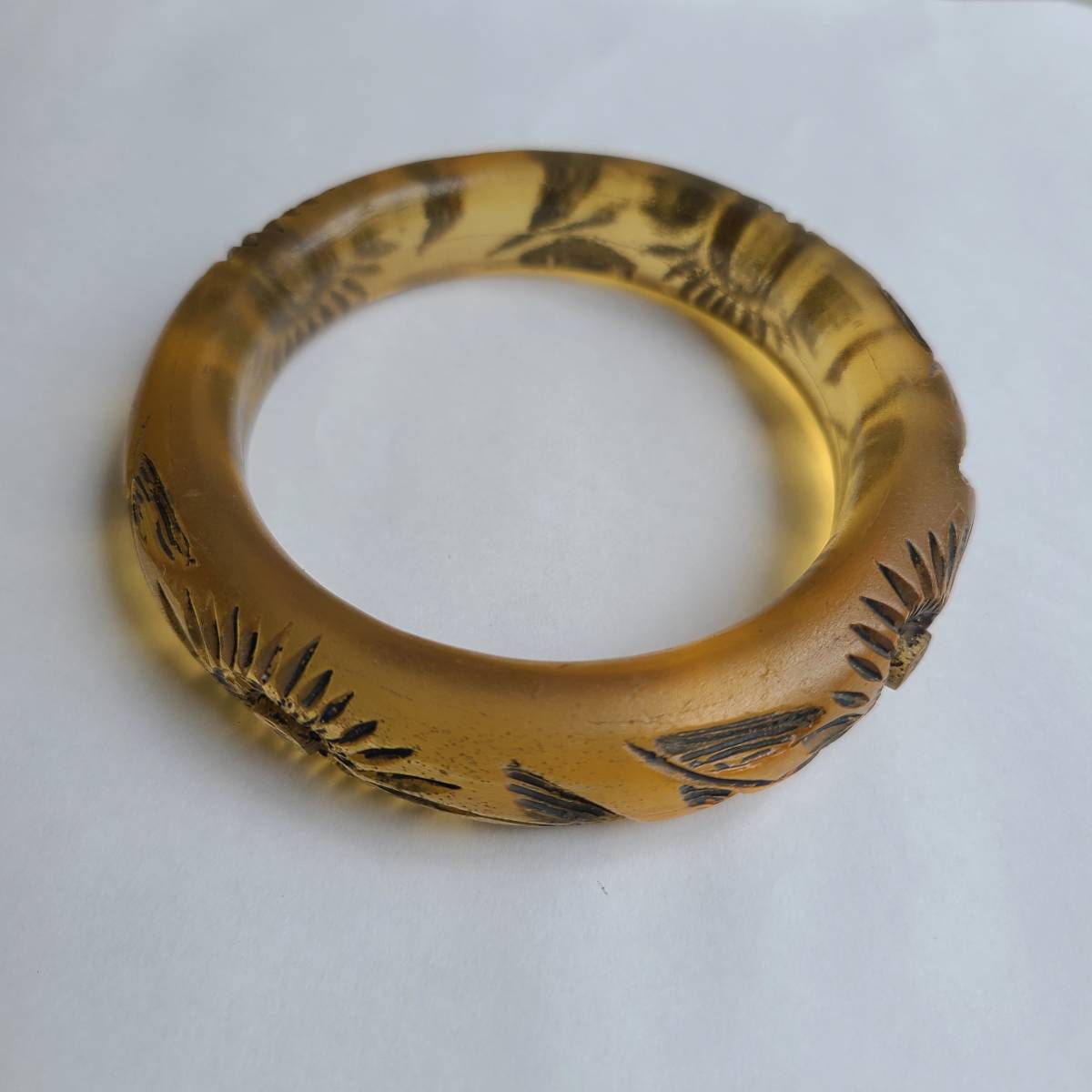 ヴィンテージ 初期プラスチック バングル bakelite ブレスレット アップルジュース 花 ルーサイト 樹脂 アンバー ブラウン 茶 アンティーク