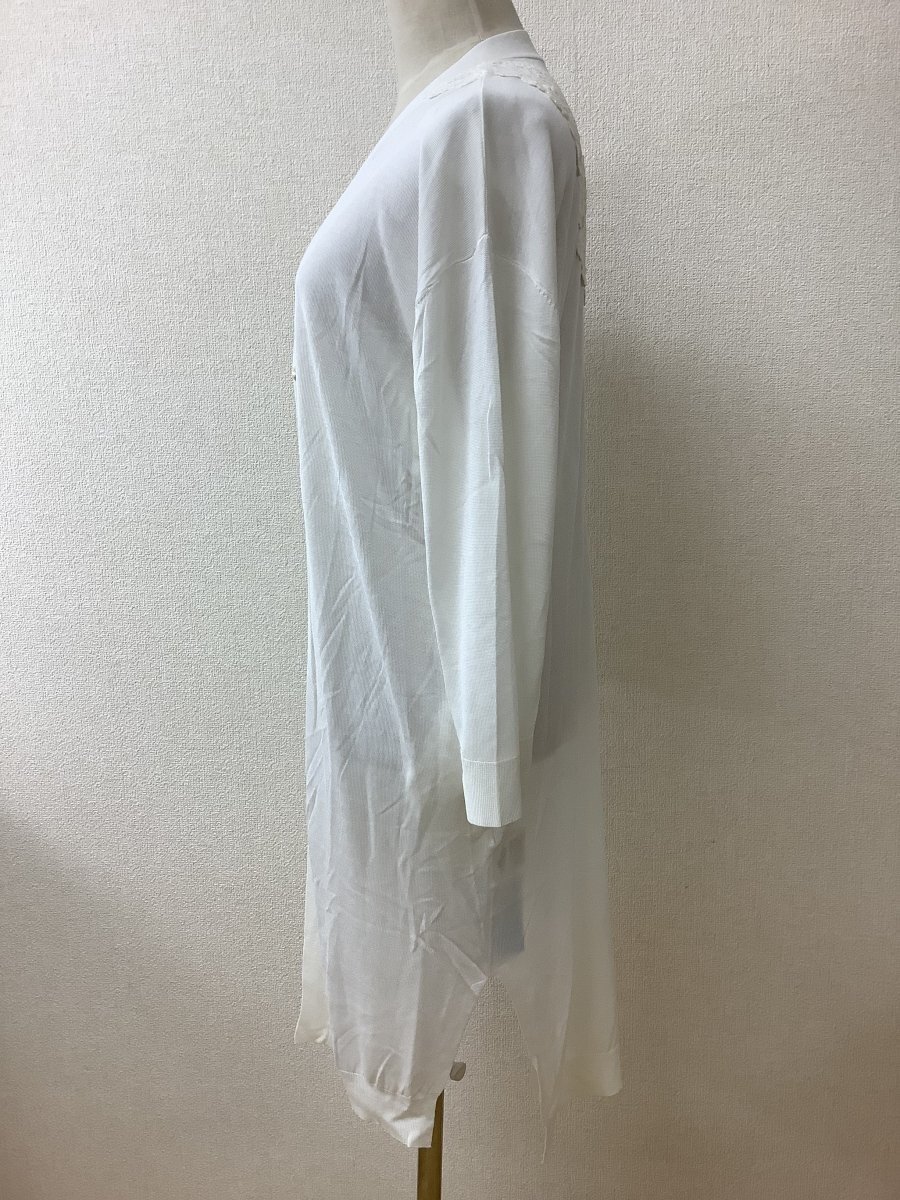 インゲボルグ (INGEBORG) レース飾り付きのロングカーディガン 白 【表示サイズ】 なし 【平置き実寸】 脇下身幅 52cmほど 着丈 98cmほど 肩幅 51cmほど そで丈 41cmほど 【季節感】春夏向け 【状態その他】 目立った傷や汚れなし ・ポケットあり ・肩パット無し 当店管理番号:10^140954 |