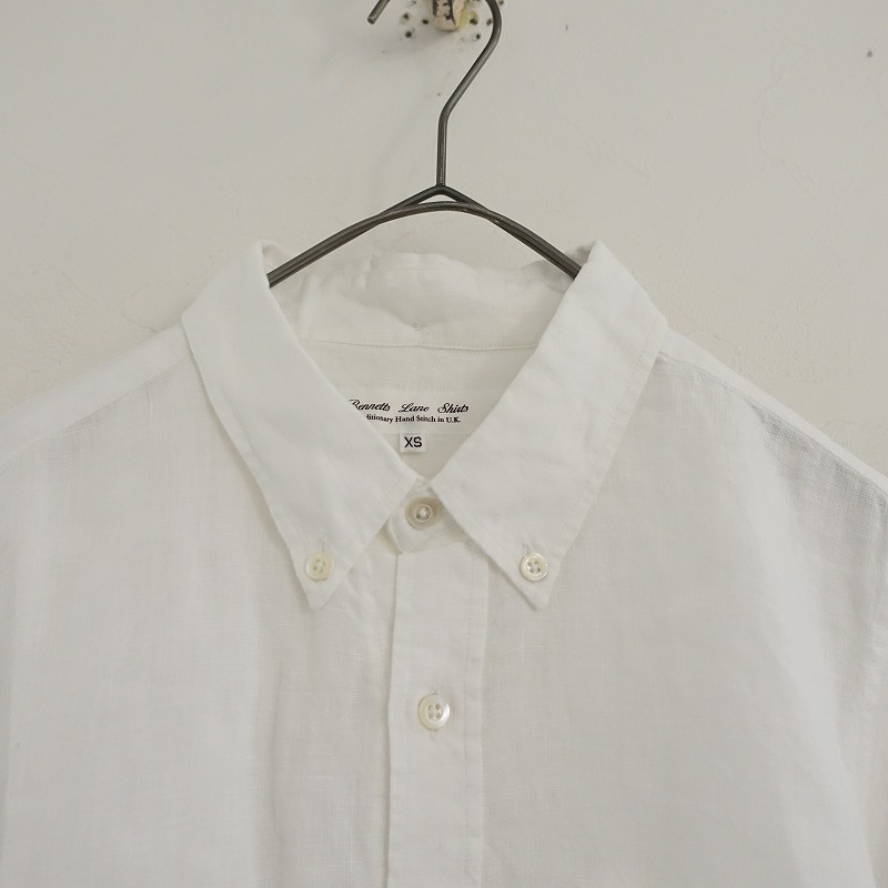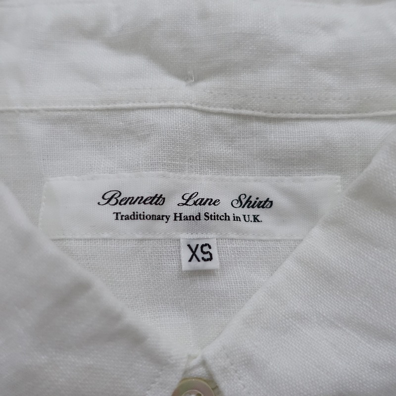| Bennetts Lane Shirtsのリネンボタンダウンシャツ XSです。 カラーはホワイトで、薄手の麻素材です。ボタンダウンデザインで、フロントボタンのフルオープン、左胸にポケットがございます。 裾はサイドガゼット付きのラウンドカット仕様で、後ろ裾丈が少し長めです。定価(メーカー希望小売価格)20,790円の商品です。 |
