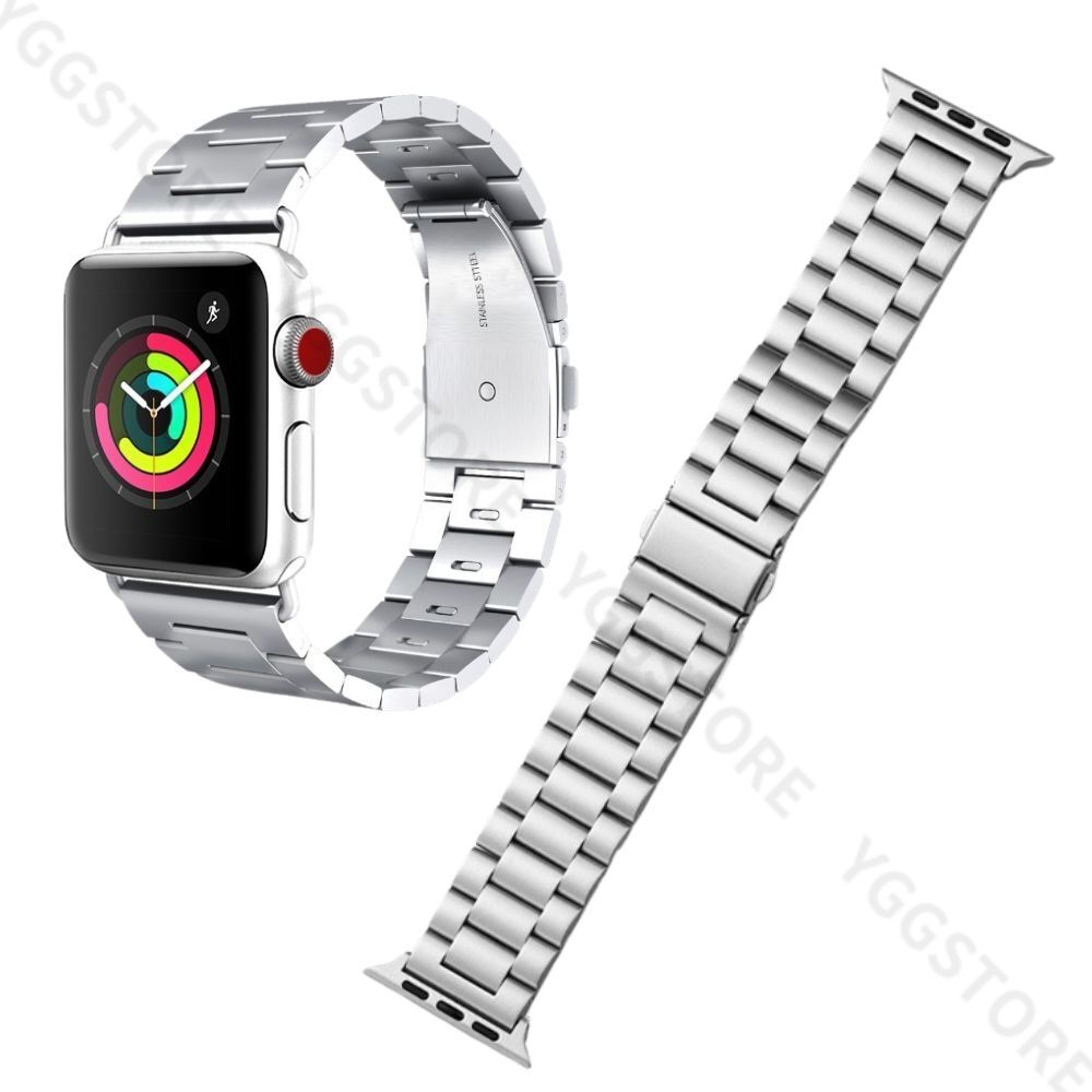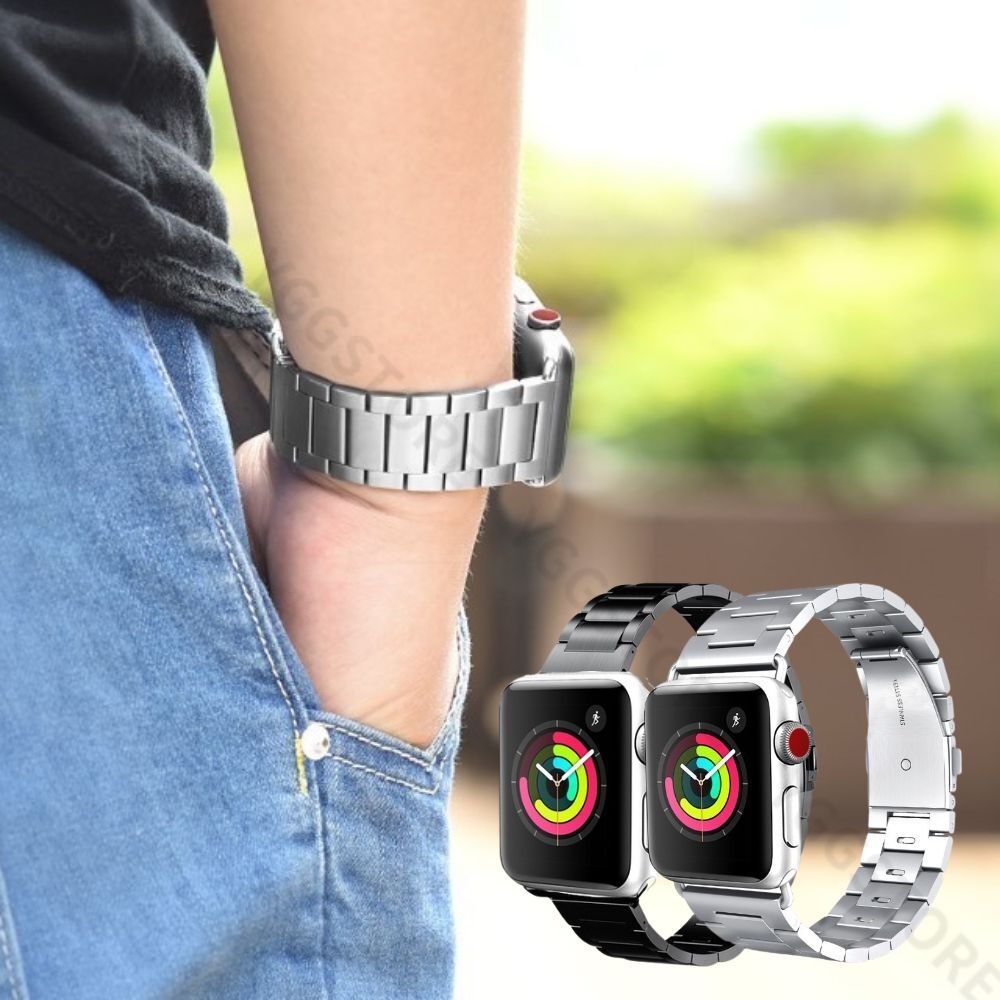アップルウォッチ スタッズ ステンレス バンド 調節工具不要 イージーアジャスト ワンタッチ 簡単 ベルト R3 銀 シルバー 黒 ブラック