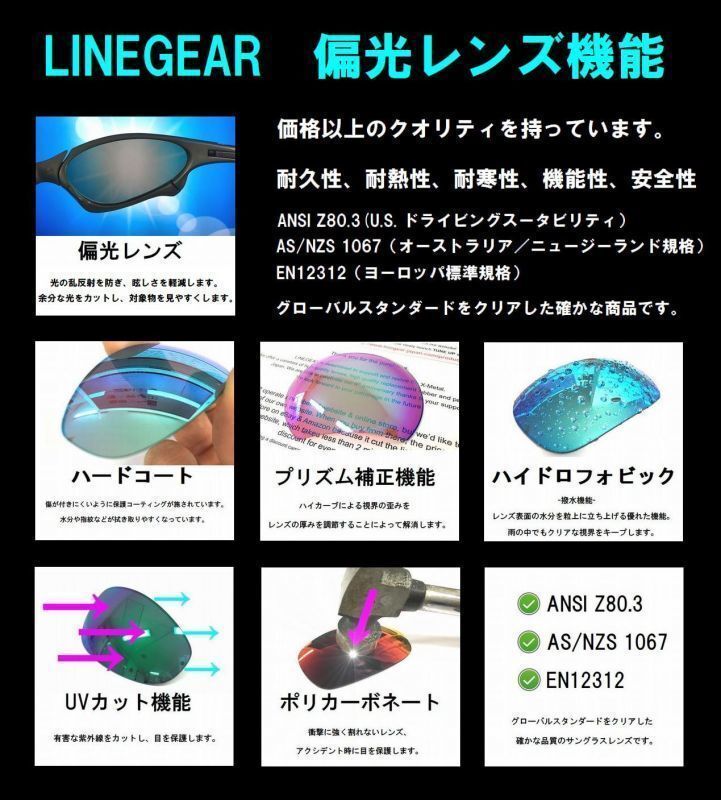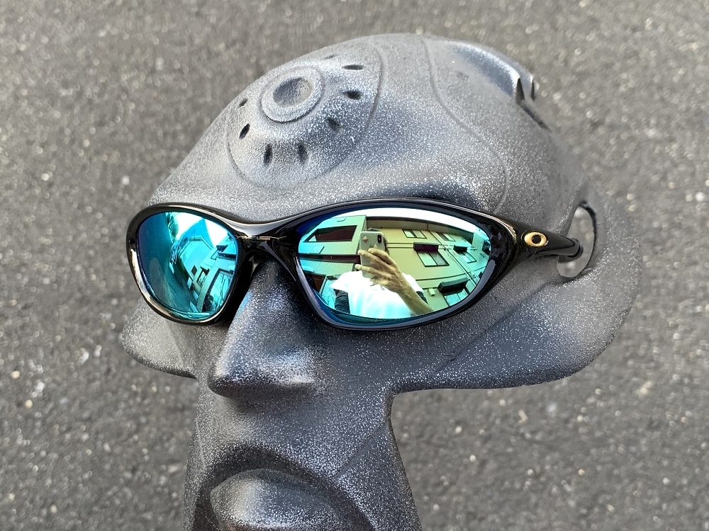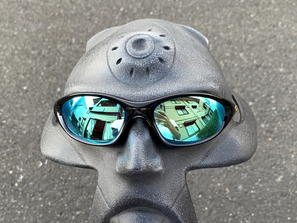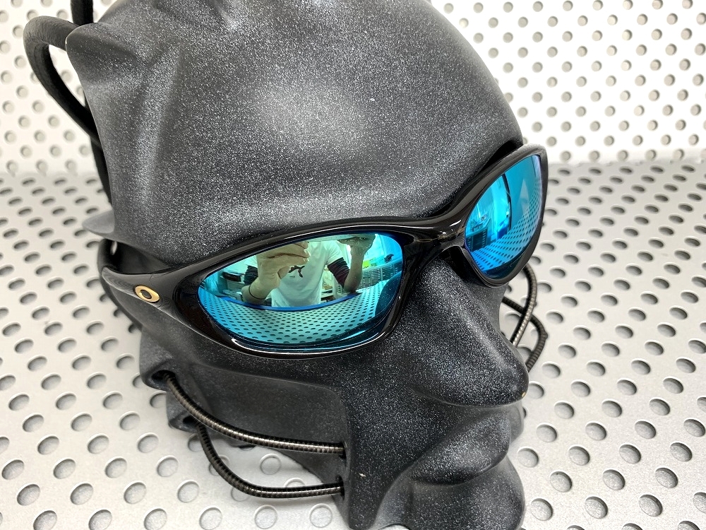 TWENTY XXには新旧の2種類があります。こちらは初期モデルに取付けするレンズになります。購入前にフレームのご確認をお願いします。見分け方としてはイアーソックスの形状の違い、またノーズ部分前面に"OAKLEY"と書いてあるフレームは初期モデルになります。ベースレンズは濃いめのグレーですが、ミラーの影響でレンズを通しての見え方はパープルっぽく見えます。程好く眩しさをカットして、コントラストのある視野を与えてくれます。<レンズの詳細>・ミラー:ターコイズブルー・ベースレンズ:グレー・透過率:10.00%・レンズカーブ:8・レンズの厚さ:1.6mm - 1.4mm・夜間の運転不可 /昼間の運転可※レンズ交換は手で簡単に行えます。パチンと外して、パチンと取り付けるだけです。※画像に写っているフレームは付属しません。 レンズ(1ペア)のみの出品になります。