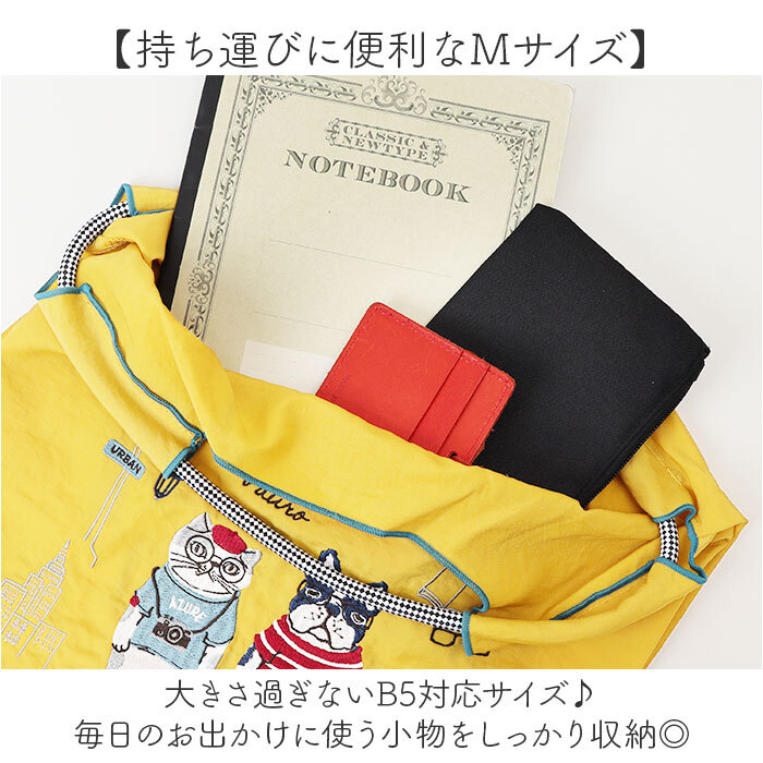 | 商品説明 | ・・【特徴的なオシャレなデザインのバッグ】 ・フロントの刺繍と持ち手のコードがユニークでおしゃれなワッシャーバッグ Mサイズ。 ・【フロントは刺繍デザイン】 ・動物モチーフ中心の刺?入り。個性的なバッグでお出かけ、お買い物も楽しめるアイテム。 ・【持ち運びに便利なMサイズ】 ・大きさ過ぎないB5対応サイズ♪毎日のお出かけに使う小物をしっかり収納◎ ・【オープンポケット付き】 ・内側には吊り下げタイプのオープンポケット付き。縦型でスマホがちょうどよく収納可能☆ ・【ユニークなドローコードの持ち手】 ・カラフルなドローコード風の紐を持ち手に採用!耐久性もバッチリ。 ・【軽くて丈夫なナイロン】 ・バッグの生地はナイロン素材。軽くて丈夫なのでデイリーユースにピッタリ☆ ・【手持ちはもちろん肩掛けも】 ・2本の持ち手で手持ちに、1本で長めに伸ばせば肩掛けも可能。 ・【お買い物バッグやサブバッグに】 ・しわになりにくいからコンパクトに折り畳んでメインのカバンに忍ばせてもOK。 ・【ランドリーやジムバッグにも】 ・ジムのお着替え入れ・コインランドリー・クリーニングのお持ち帰りなどにも使いやすい! ・【嬉しいはっ水機能】 ・ちょっとした雨を弾くはっ水機能付き。お手入れが楽ちんなのもGOOD。 ・【ポケット仕様】 ・[メインルーム]・・・オープンポケット×1 |