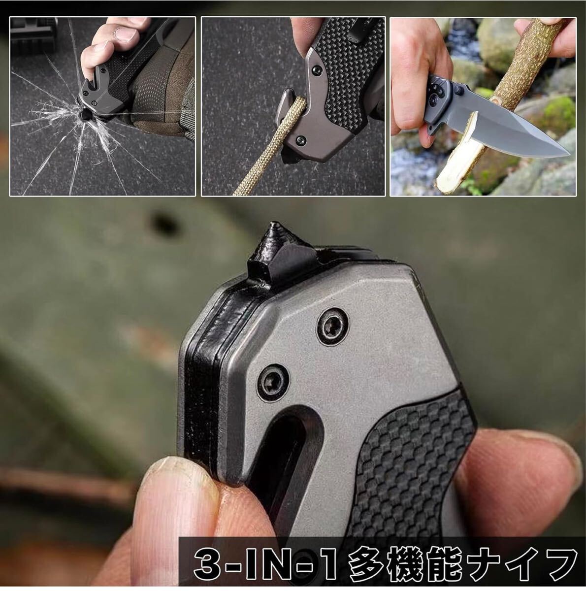 【3-IN-1多機能ナイフ】多機能ナイフとして 、ガラスブレーカー 、シートベルトカッター機能も付いて、日常の使用に便利です。キャンプ ナイフ耐食性に優れて、汚れも取りやすいです。