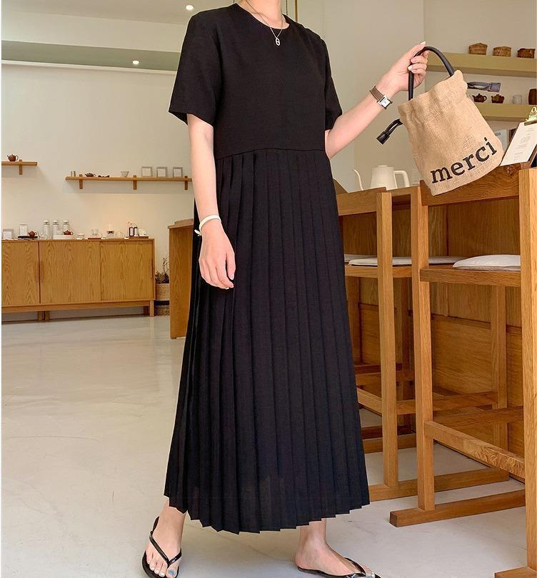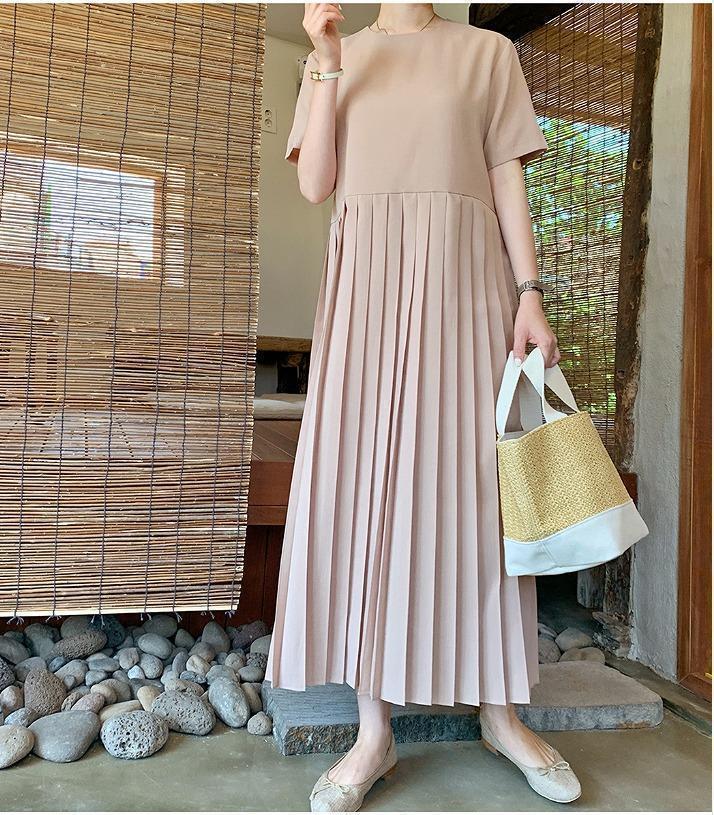 大きいサイズ レディース ワンピース プリーツ ロング 春夏 秋 新品 半袖