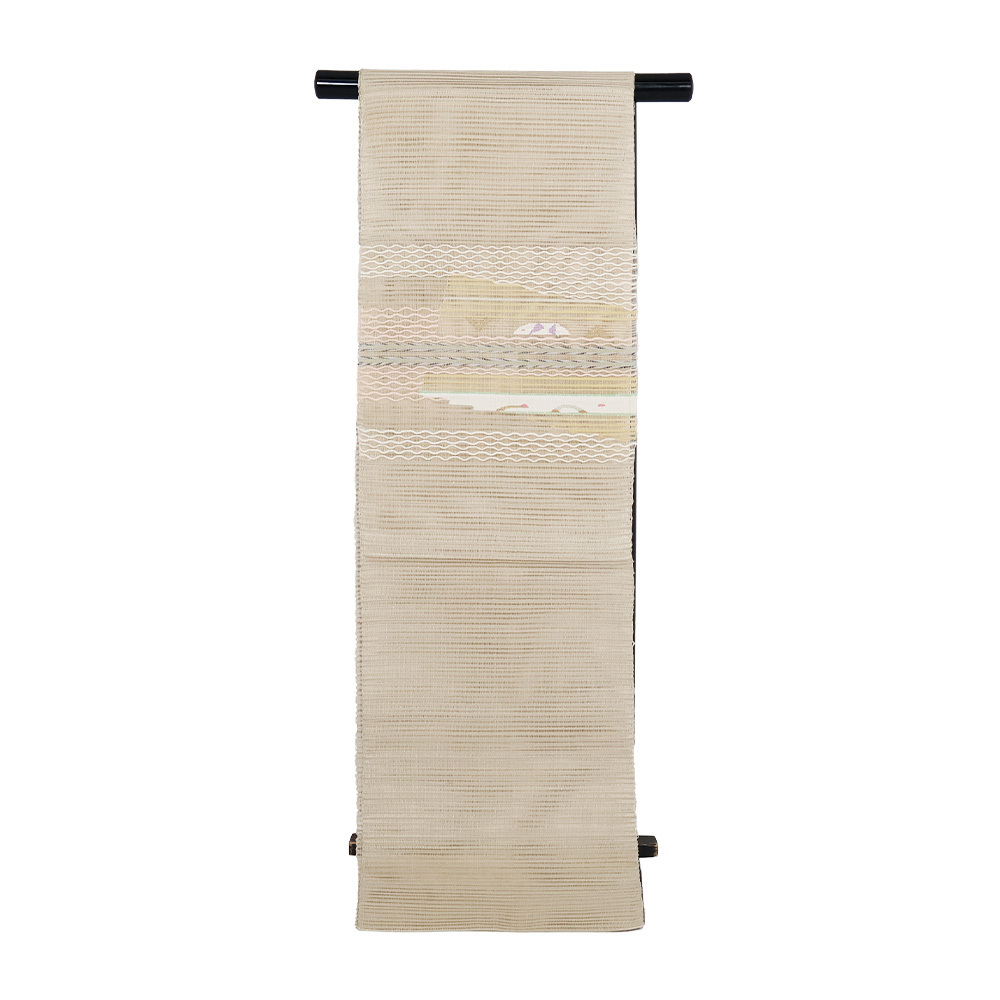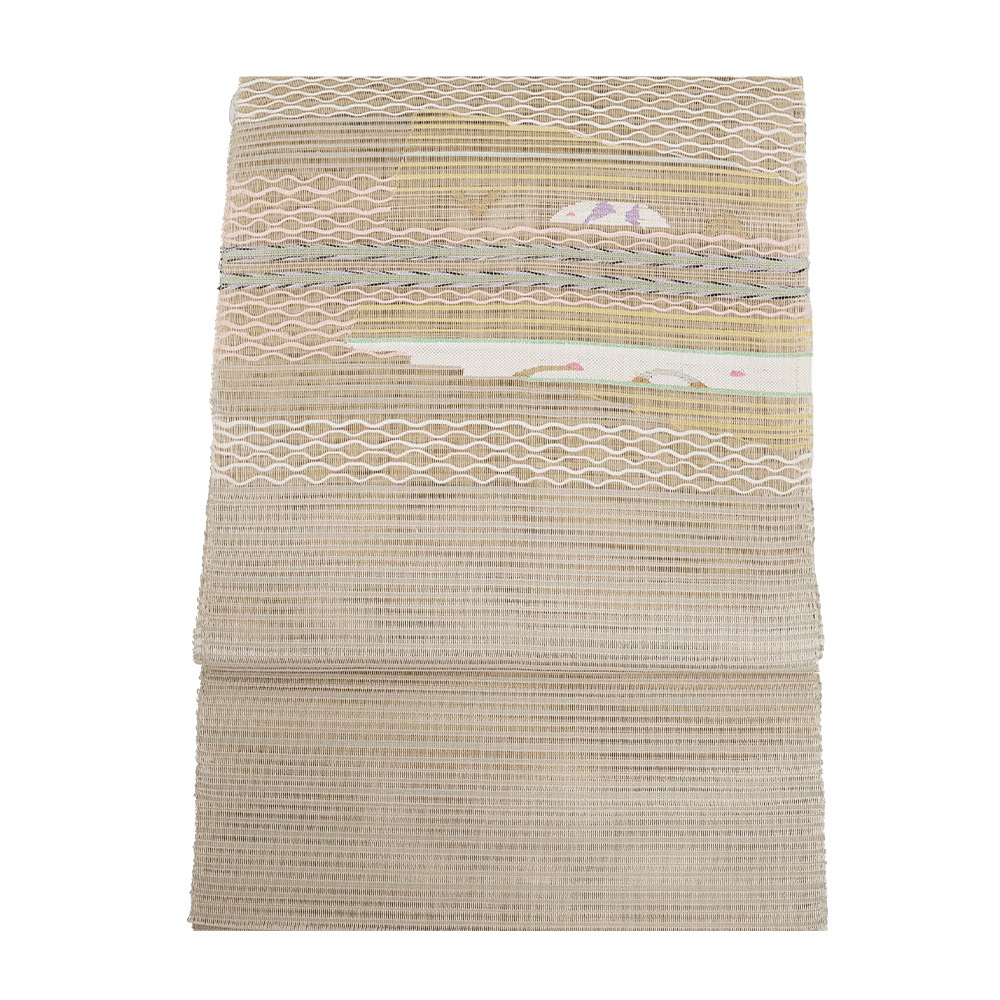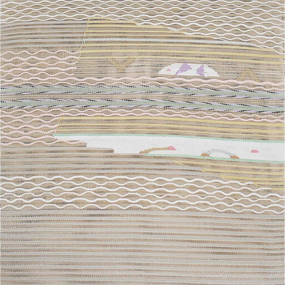 | 絽綴れ 名古屋帯 茶色地 幾何模様・もじり織縞 仕立て上がり | |