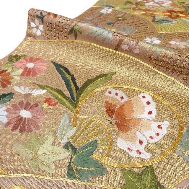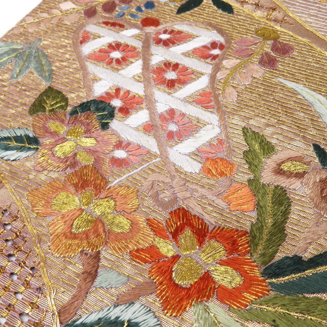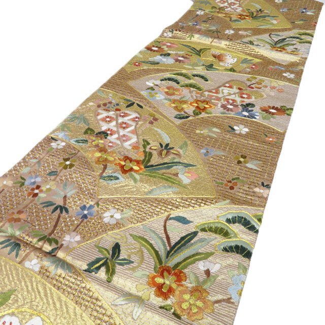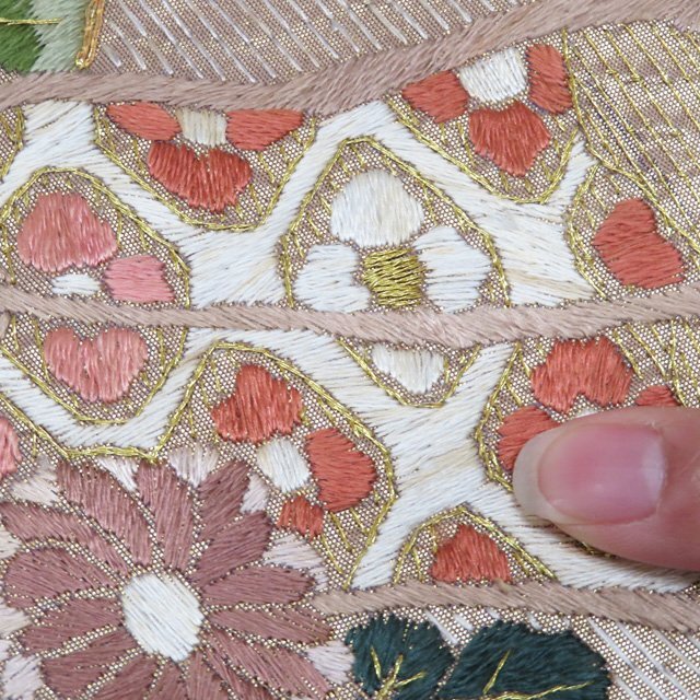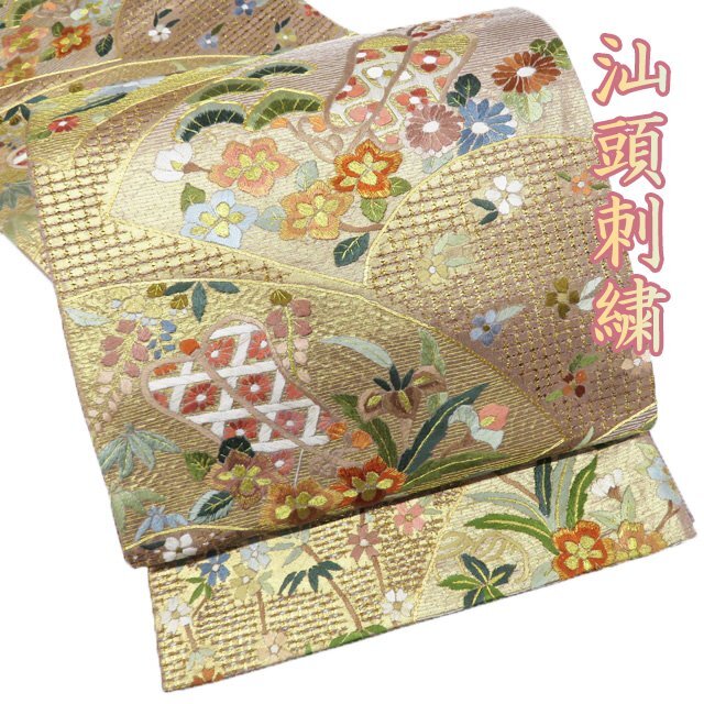 サイズ 443.5cm x 30.5cm 素材 正絹 商品ランク B ●お色 多色 金 中国三大刺繍の一つです。 糸を縫い付けるだけでなく、糸を抜いたり布地を切り抜いたりといった作業を行い、透かしを作る刺繍発祥は中国広東州東部の町「汕頭」です。1858年の天津条約を機に、宣教師たちがヨーロッパの刺繍技法を伝えたのが始まりといわれています。 ヨーロッパの感性と中国古来の技法とが融合し、現在では世界に誇れる刺繍として完成しました。 世界最高峰の技術をお楽しみください。 白場にアクがございますが、まだまだご着用いただけるお品物です。 一部商品は実店舗・他サイトでも並行して販売しておりますので売り切れの際はご了承ください。 その他多数販売中 kiho | ||||||