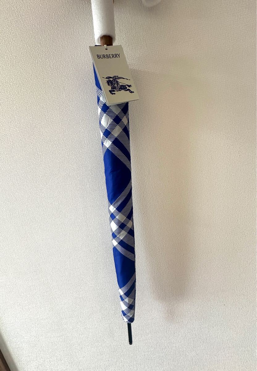 【商 品】・・・◆BURBERRY◆バーバリーマキシチェック柄 カバー付き雨傘 ブルー青×白