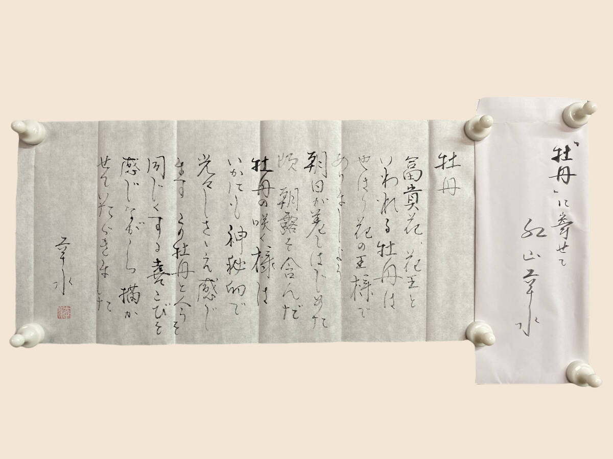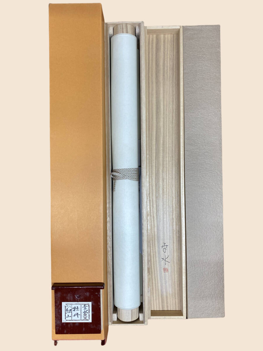 『模写』紅山幸水『牡丹図』太巻 花鳥図 共箱 二重箱 太巻 堀史明師事 茶道具 掛軸 璟蔵25010746
