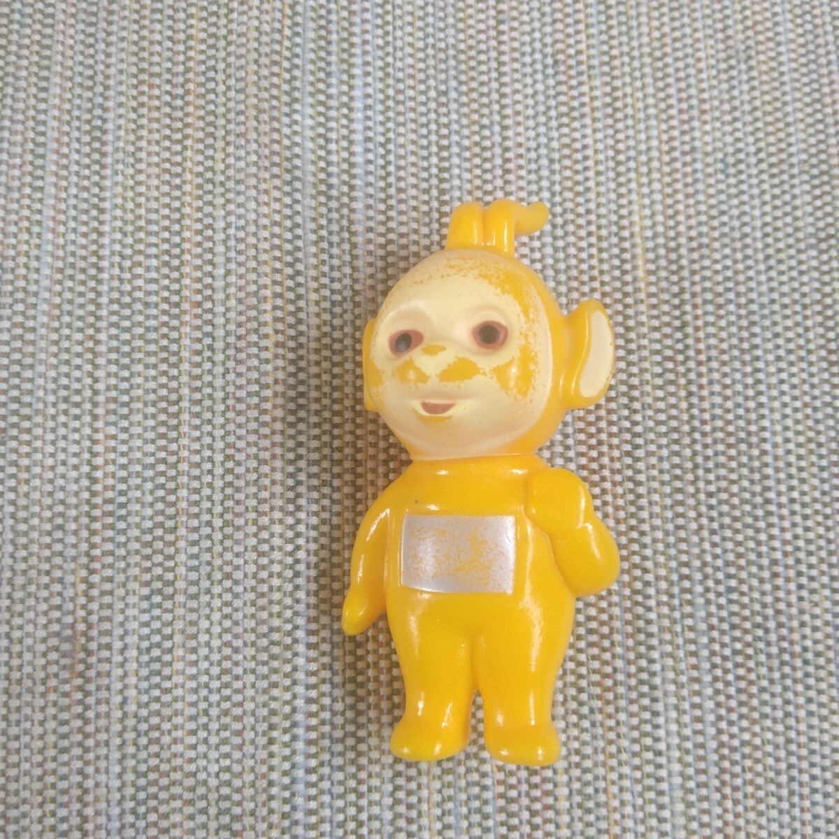 ネットで調べると「テレタビーズ」ラーラみたいですが、顔が少し違う感じがします。(偽物?)首手で回せます。写真でよく確認のうえ御入札下さい。