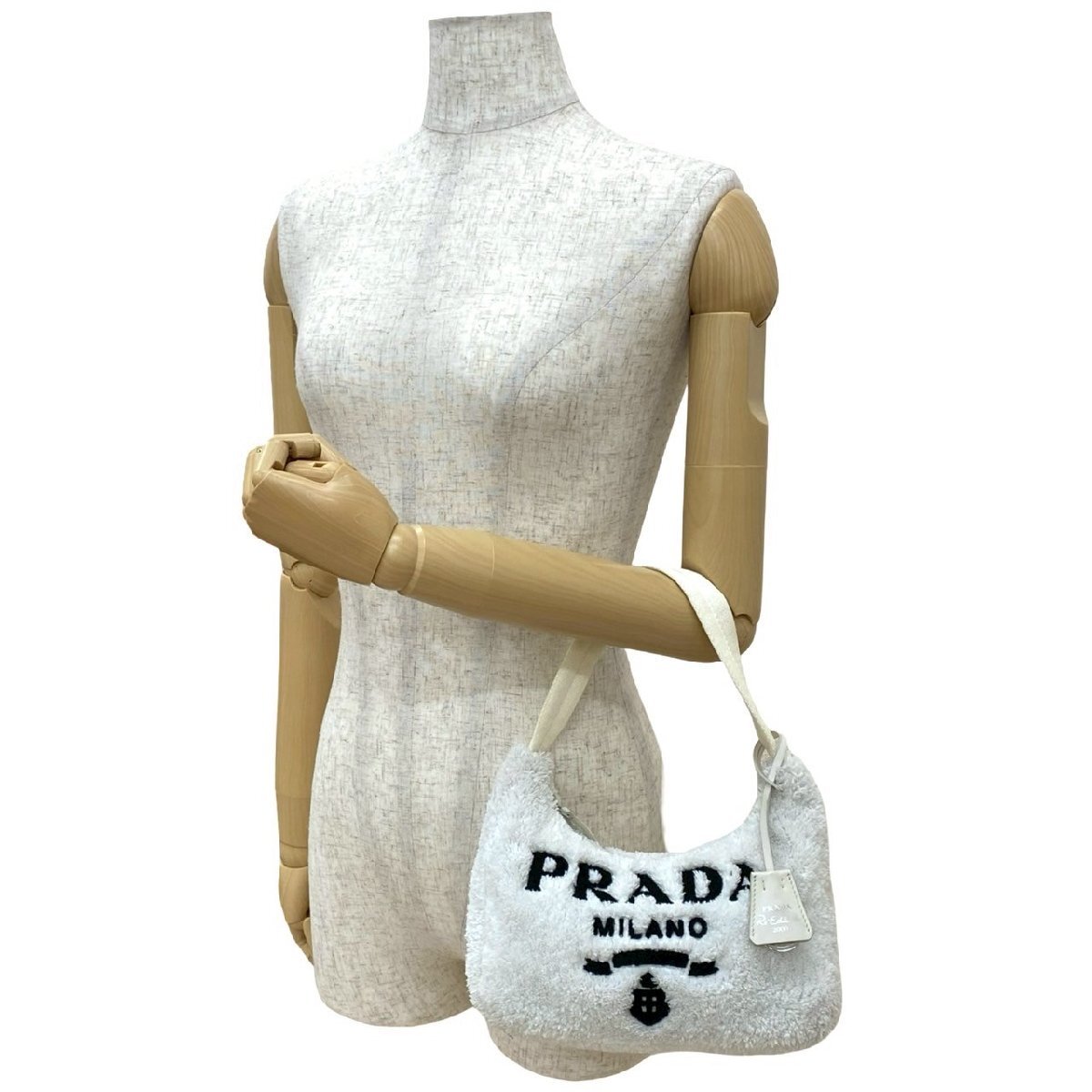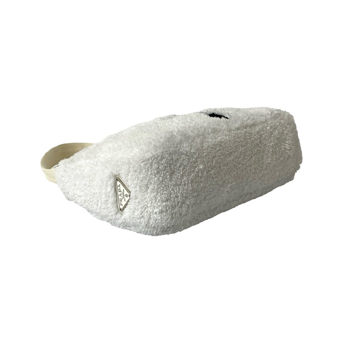 極 美品 希少品 PRADA プラダ テリー ミニ 三角ロゴ 金具 パイル ハンドバッグ ワン ショルダーバッグ ポーチ ホワイト 白 44345