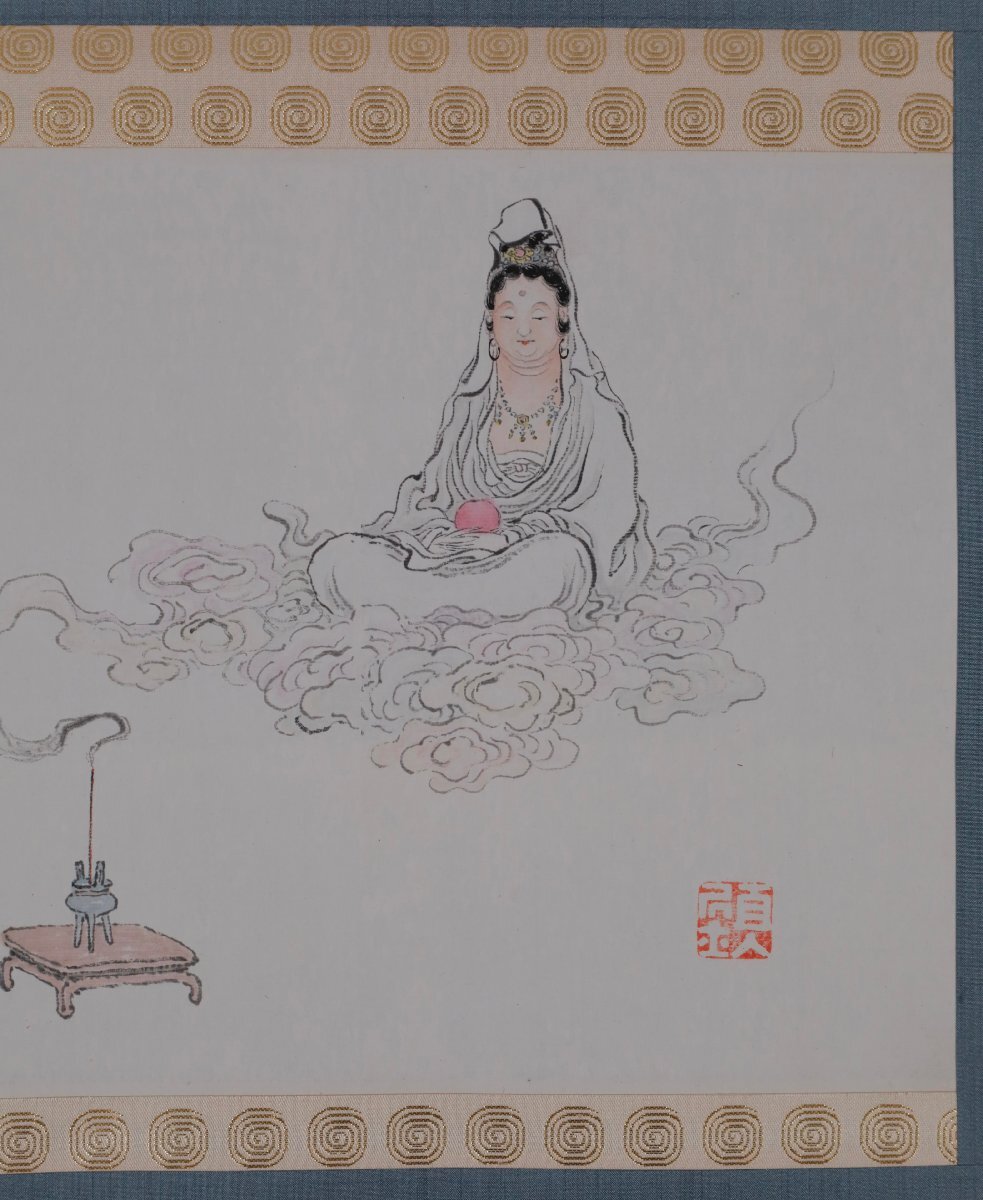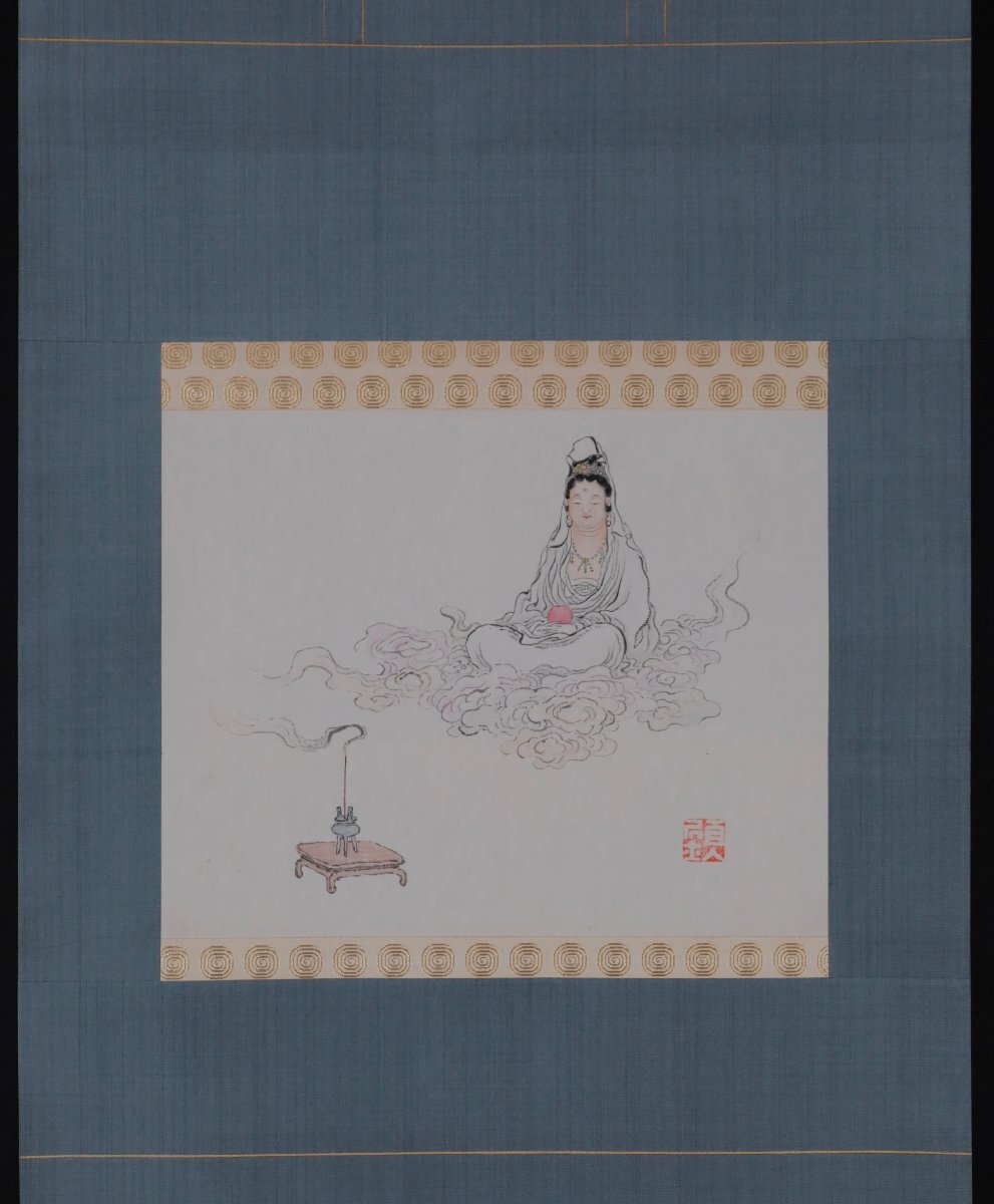 【模写】吉】12552 田能村直入 観音像 田能村竹田師事 豊後大分の人 南画家 中国画 仏画 仏教 掛軸 掛け軸 骨董品