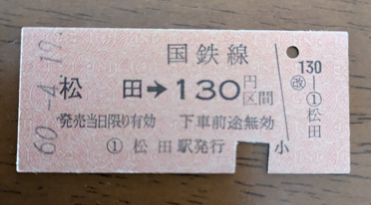 ◆国鉄御殿場線 松田→130円区間 B型硬券乗車券
