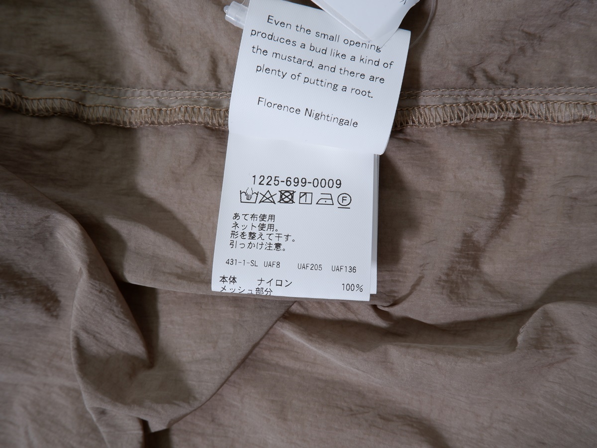 【素材感】シャリ感のあるナイロン地 【透け感】なし 【裏地】一部メッシュ地あり 【ストレッチ】なし 【開閉デザイン】スナップボタン 【付属品(取り外し可)】なし 【商品情報】シャツ感覚で羽織れる、ナイロンタフタを使用したコーチジャケットです。裾はドローコード仕様、ジッパー付きのサイドポケットなどディテールにも配慮した一着です。 |