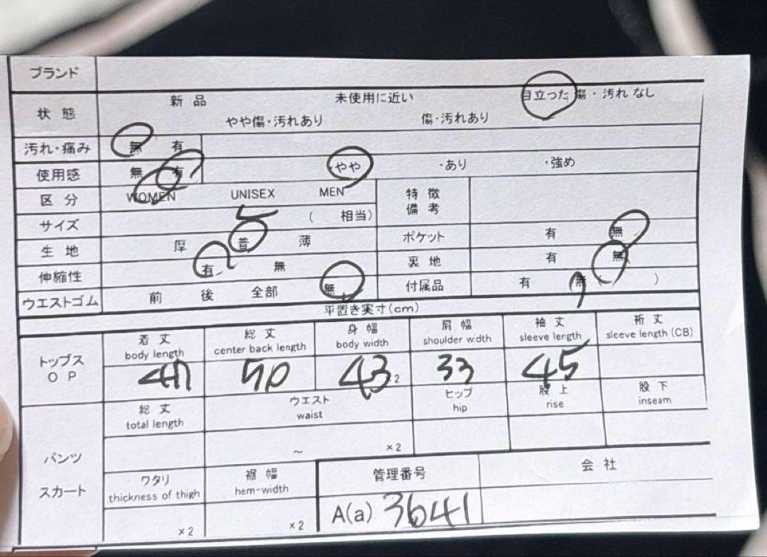 ※素人採寸ですので多少の誤差はご了承ください