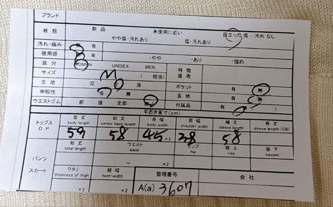 ※アパレルのブランドによりサイズ基準が異なるので、必ず採寸表をご確認の上、ご購入お願いいたします