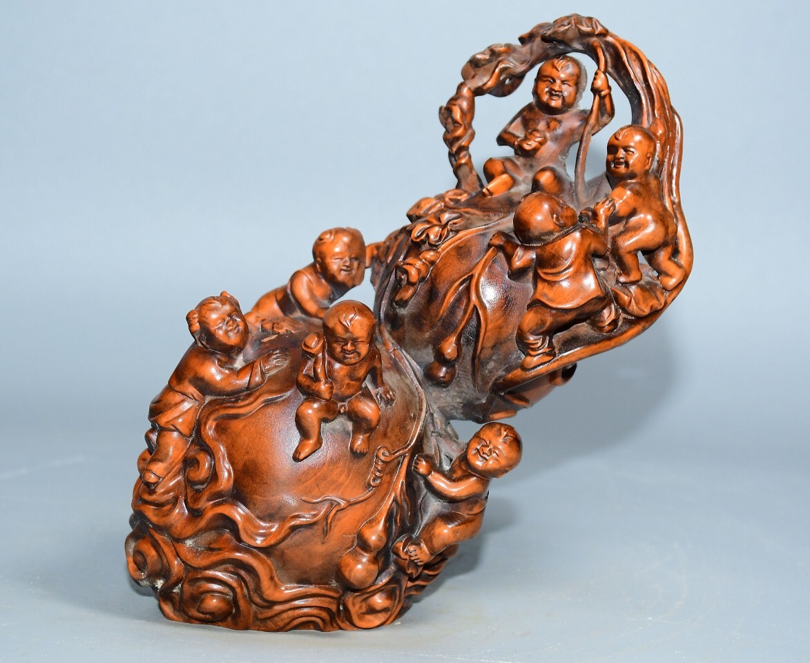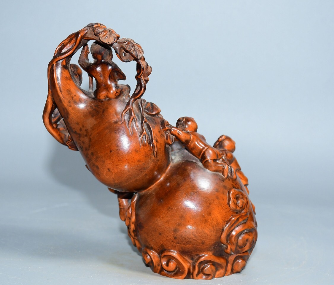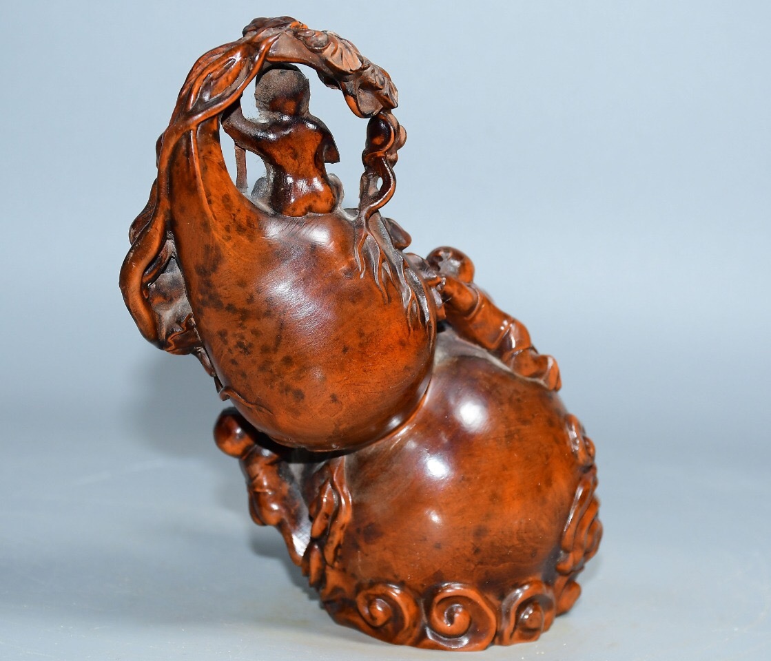 【超珍館蔵】黄楊木製 細密彫 多子多福ひょうたん 置物 賞物 古賞物 古董品 古美術品 時代物 旧家蔵出 稀少珍蔵品