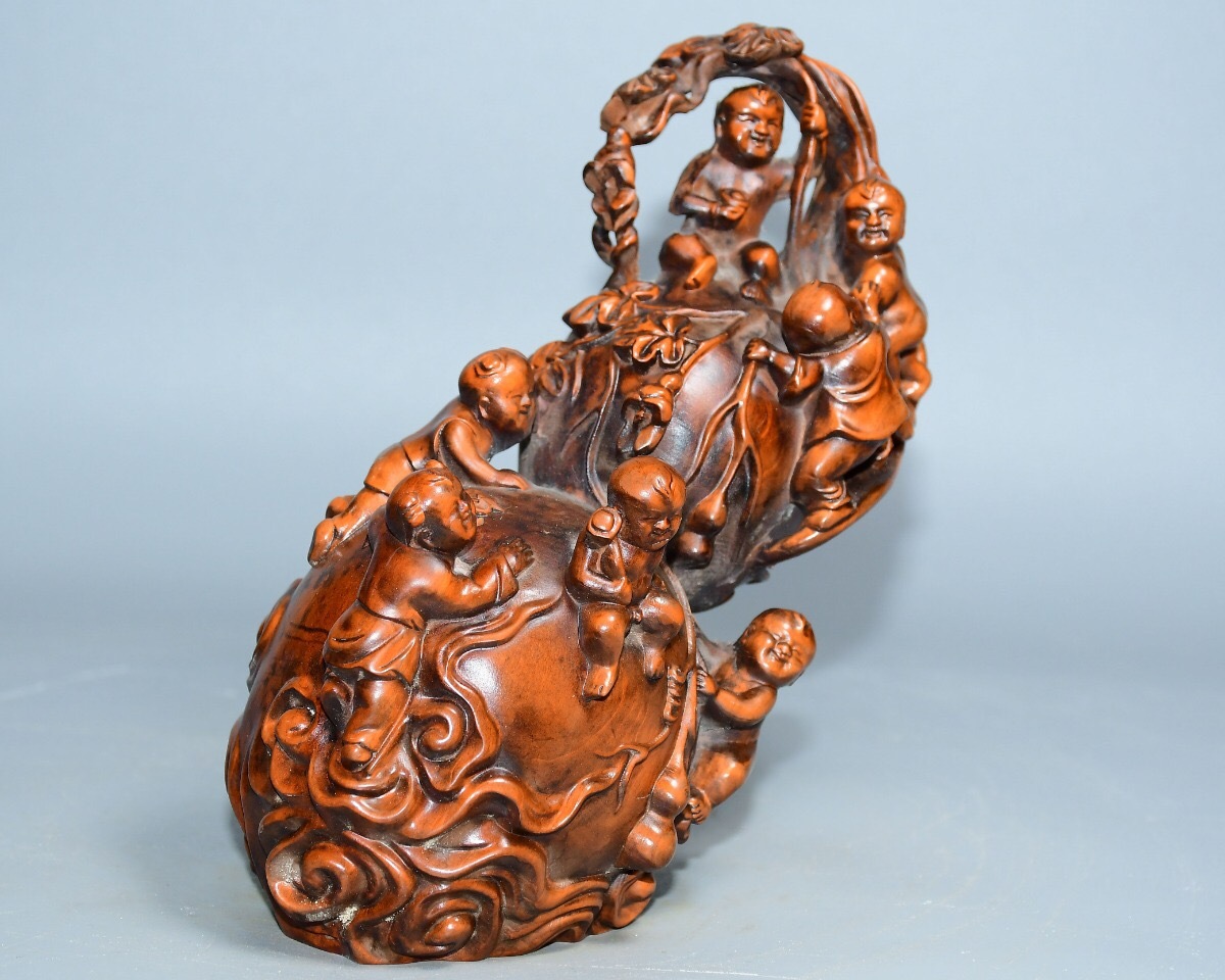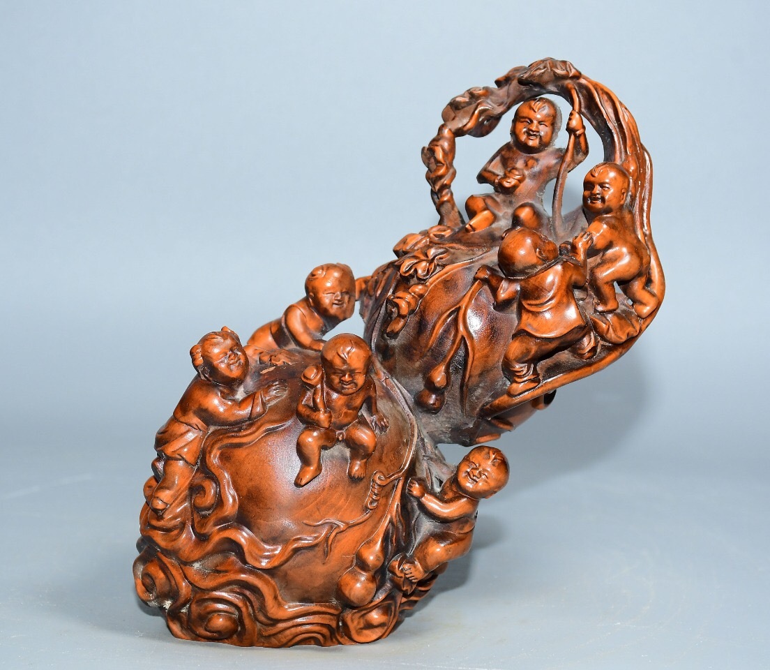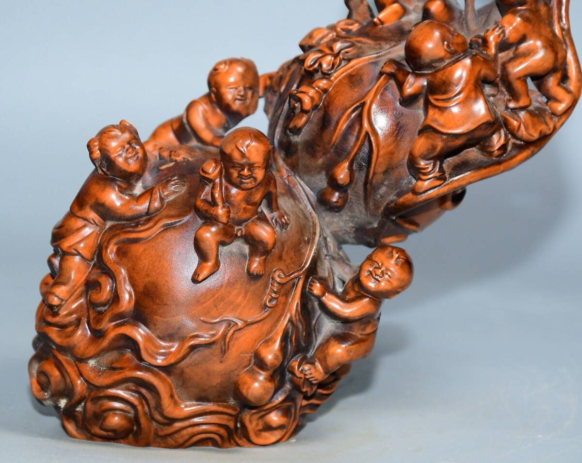 【超珍館蔵】黄楊木製 細密彫 多子多福ひょうたん 置物 賞物 古賞物 古董品 古美術品 時代物 旧家蔵出 稀少珍蔵品