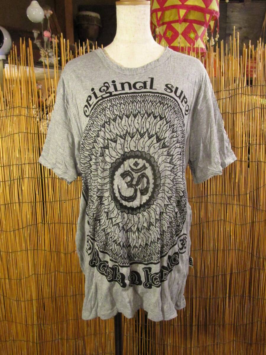 ②新品*男女兼用*皺加工*コットン素材*曼荼羅風オームプリント*半袖*Tシャツ