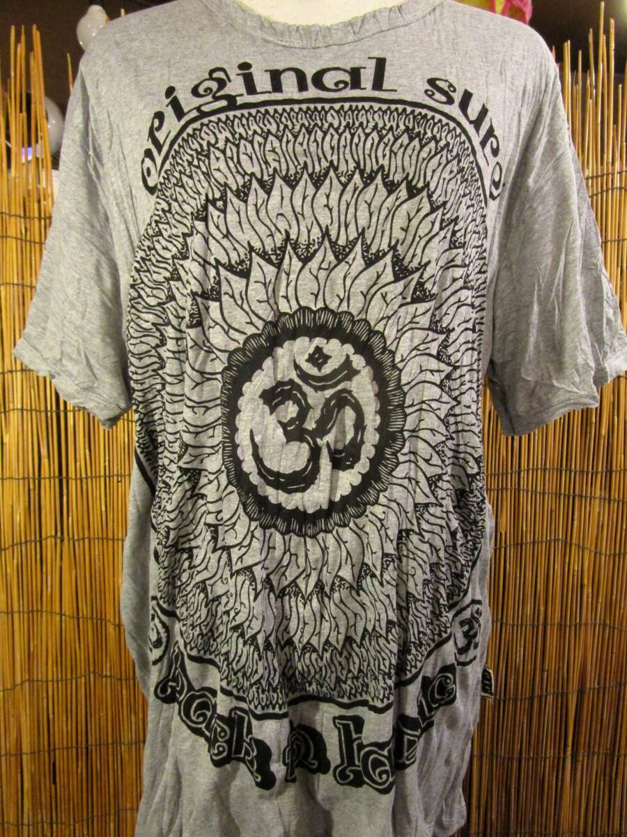 曼荼羅風オームがプリントされた皺加工の半袖Tシャツになります