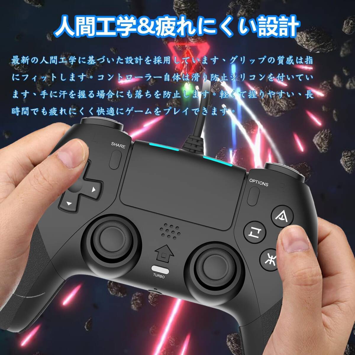 C30 黑この商品についてehdd【有線P4コントローラー】本ゲームパッドは斬新なデザインとユニークな外観を持っています。有線ゲームパッドなので、電池切れを気にせず、 2.2Mの長いUSB接続ケーブルが付属しており、USBポートがコンピュータに接続されるとすぐにゲームを開始できます。最新のPS4システムソフトウェアバージョンに対応します。STEAMなどの一般的なコントローラー設定を持つメインストリームPCゲームプラットフォームでの使用をサポートしています。プラグアンドプレイ式で、ソフトウェア、ドライバ、または複雑なインストールプロセスは必要がありません。【背面ボタン搭載&リアルなゲーム体験】連射コントローラーの後ろにM1とM2二つのボタンがあり、一つのプログラムに多個の動作編集ができます。アクションゲーム、ミニゲームなどの様々なゲームに必須の技「コンボ技」をこのコントローラーならストレスフリーで楽に放つことができます。P4コントローラには振動機能が備わっていますので、あなたは没入感あふれるものになり、本物のゲーム体験をもたらします。微操作、二重振動、様々な機能がサポート。精密なボタン配置で、良い操作性があります。同時に、さまざまな色を表示できるライトバーも備えています。【広範囲のシステム互換性】P3、P4 /Slim/Pro、Windows(7/8/10)に対応しています。 最新のP4システムソフトウェアバージョンにも適用されます。安定された有線接続と強力な信号伝送で、無線コントローラの電池切れ・スリープモードの、煩わしさ・突然のBluetooth接続不良などのトラブルから貴方を開放し、快適なゲーム環境をご提供いたします!コントローラーの背面に2mmの小さな穴(リセットキー)があります。針や小さなもので押してください、接続できない問題が解決します。【高性能高耐久ボタン】2つの3Dアナログジョイスティックは、360°オールラウンドで正確に操作できます。 2つの非対称モーターが左右に組み込まれており、二重の振動ショック機能を提供します。[共有]ボタンを使用すると、エキサイティングなゲームクリップをいつでもソーシャルネットワークで共有できます。強力な振動機能は臨場感をもたらし、超高精度ボタンとジョイスティックでゲームを自由に体験できます。P4ハンドルの基本キーは耐摩耗性の分子素材でできており、1万回のキー押下テストが可能です。新しいTURBOバースト機能、ゲームはより良いゲーム体験をもたらすことができます。【人間工学設計】最新の人間工学に基づいた設計を採用しています、グリップの質感は指にフィットします。コントローラー自体は滑り防止シリコンを付いています、手に汗を握る場合にも落ちを防止します。ゲームパッドボタンのレイアウトは、優れたデュアルアナログジョイスティックデザインで最適化されています。軽くて握りやすい、PC/P4/P3ゲームを長時間遊んでも、疲れるなどのことはありません。特に家族や友人と一緒にゲームを楽しむことが勧めます。使用方法:1.USBコードをP4本体に差し込む。2.HOMEボタンを押すとLEDライトが点滅し続ける。3.一つライトが光ると接続完了。