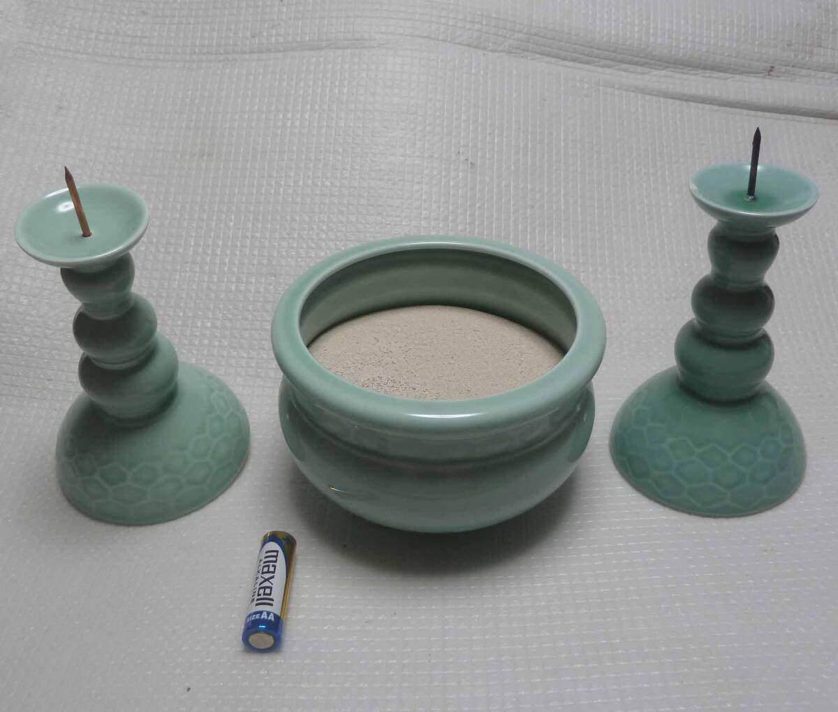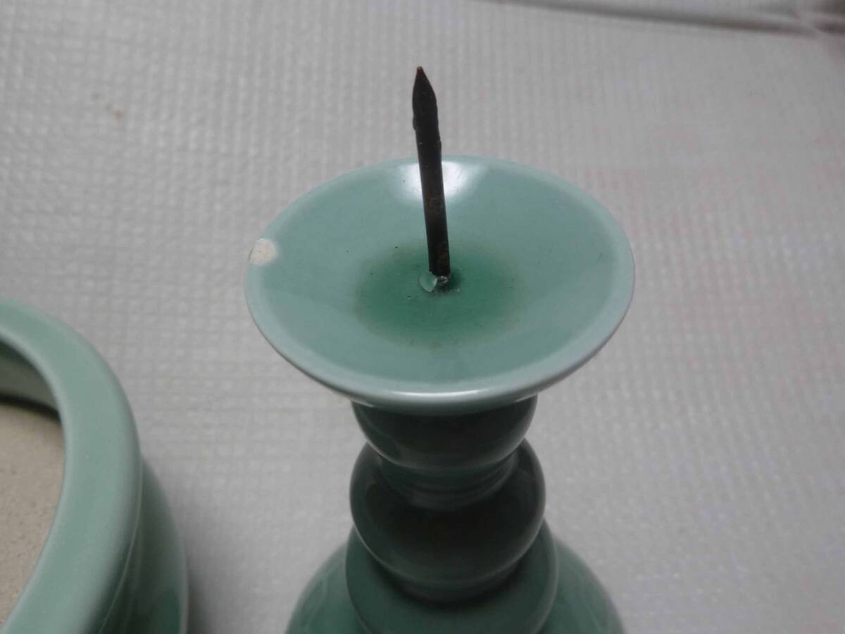 「陶器製 秀及&善 仏壇 仏具 灰付き 香炉 お香立て 火立 ロウソク立て 燭台」です。