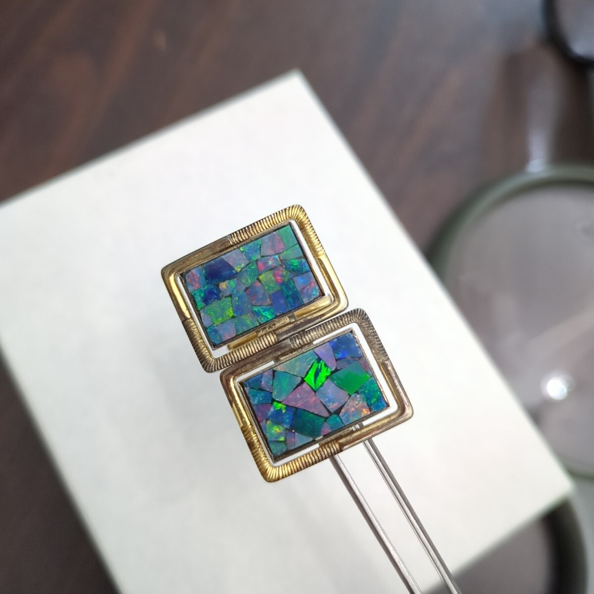 モザイクオパールとシルバーに金メッキのお品です。