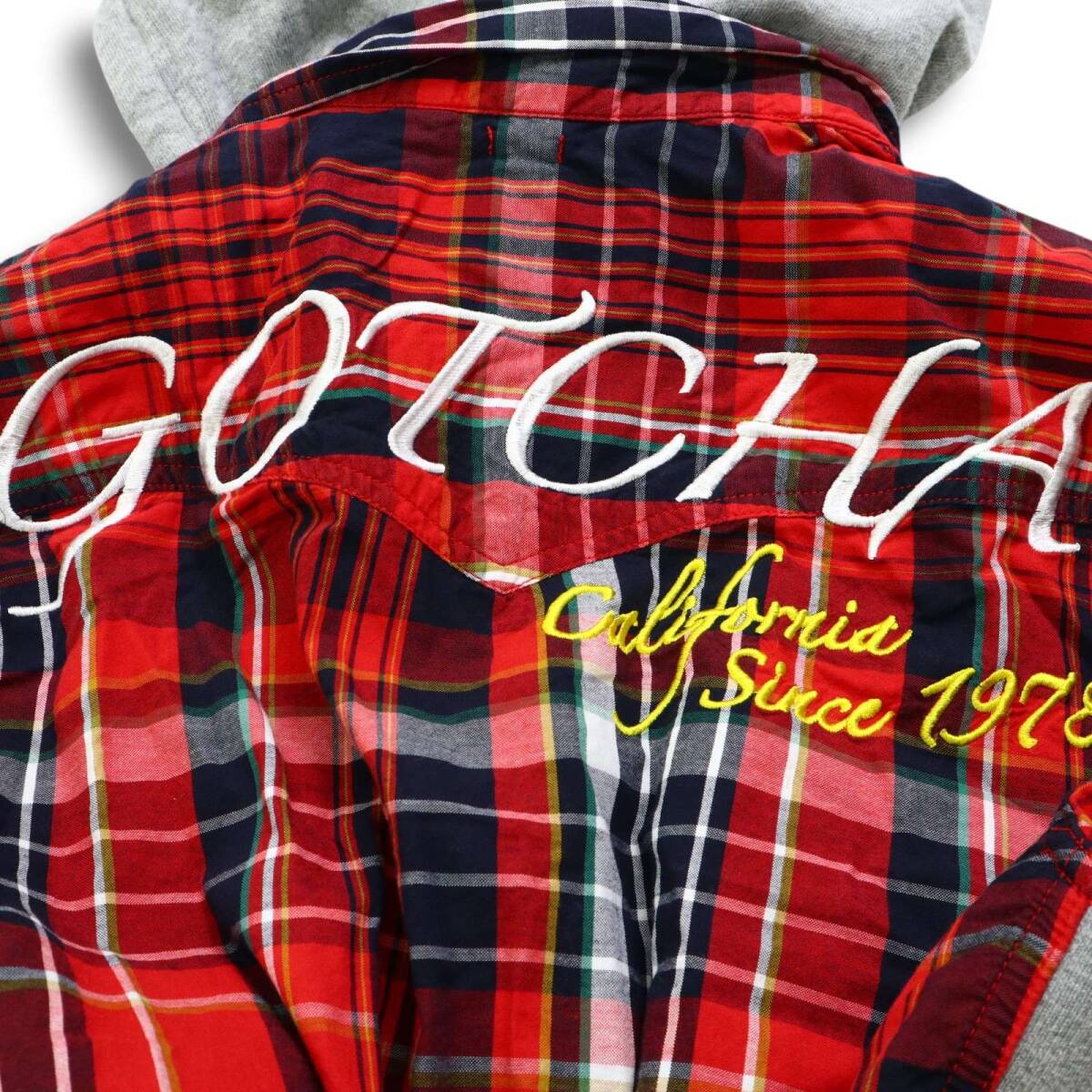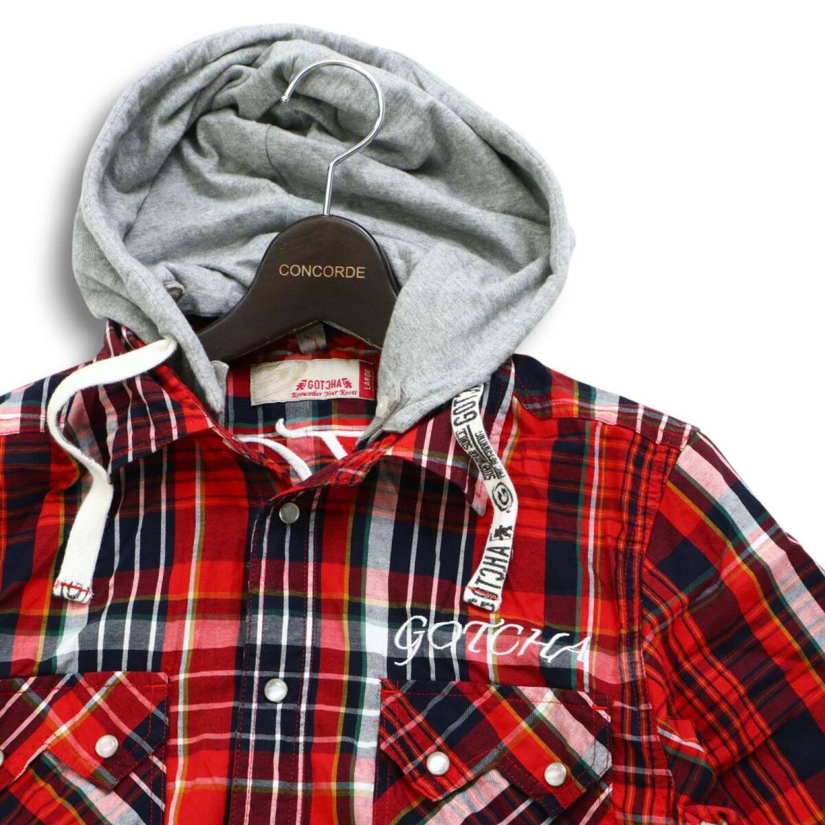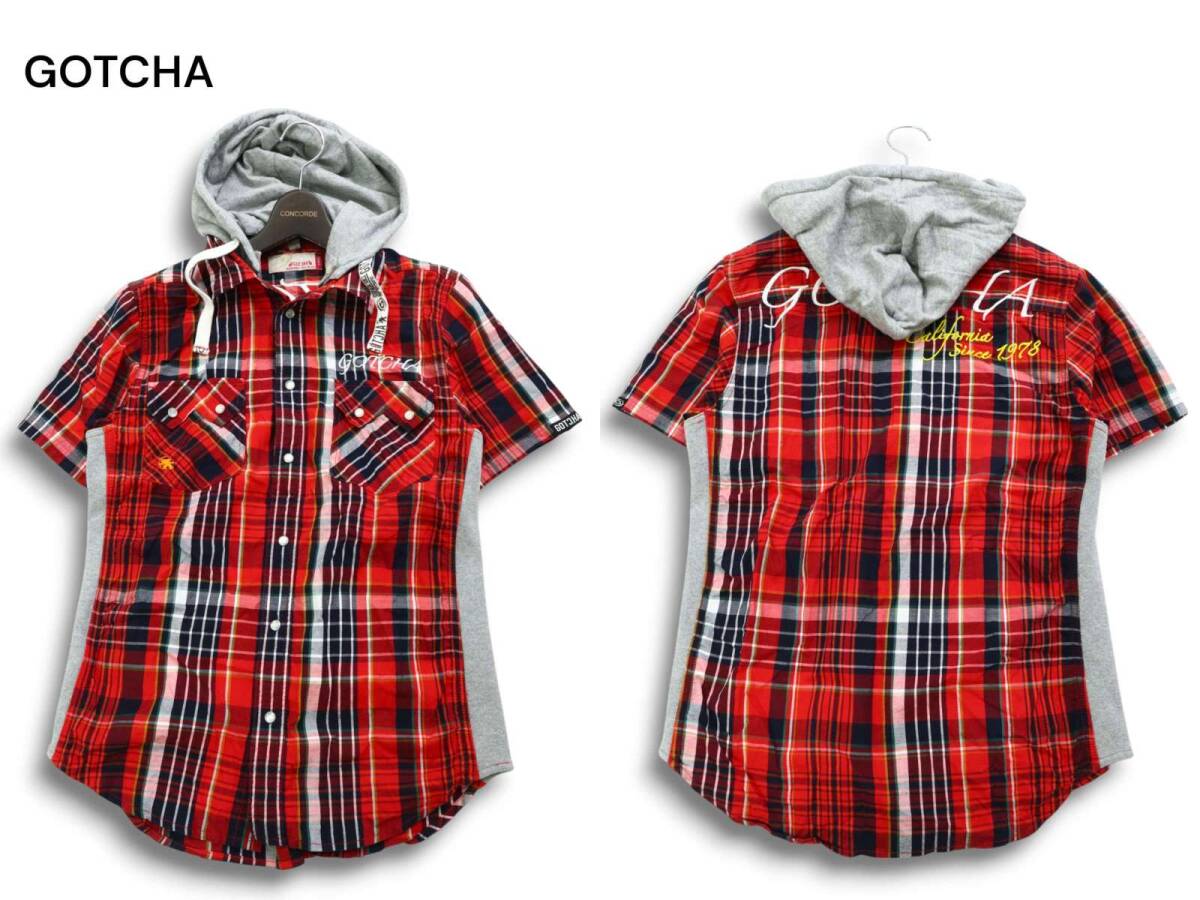 GOTCHA ガッチャ 春夏 フード着脱可 ロゴ刺繍★ 半袖 チェック シャツ Sz.L メンズ サーフ