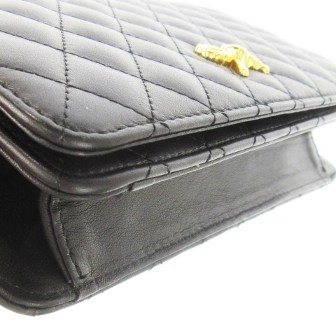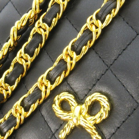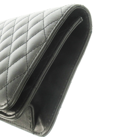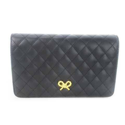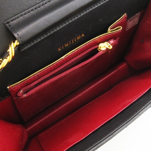 キミジマ KIMIJIMA クラッチバッグ 2way ショルダーバッグ キルティングレザー チェーンベルト リボンモチーフ 黒 ブラック