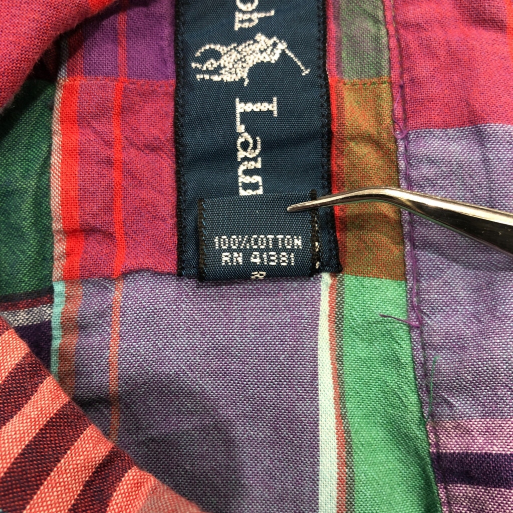 | [商品管理番号] U6566 [ブランド] RALPH LAUREN/ラルフローレン [サイズ] L [実寸サイズ] 肩幅:約47cm 着丈:約78cm 身幅:約60cm 袖丈:約66cm [主な素材] 表地 : コットン [色] マルチカラー [仕様] ボタンダウン チェック [状態] 汚れ:袖 キズ:裾 | |||
