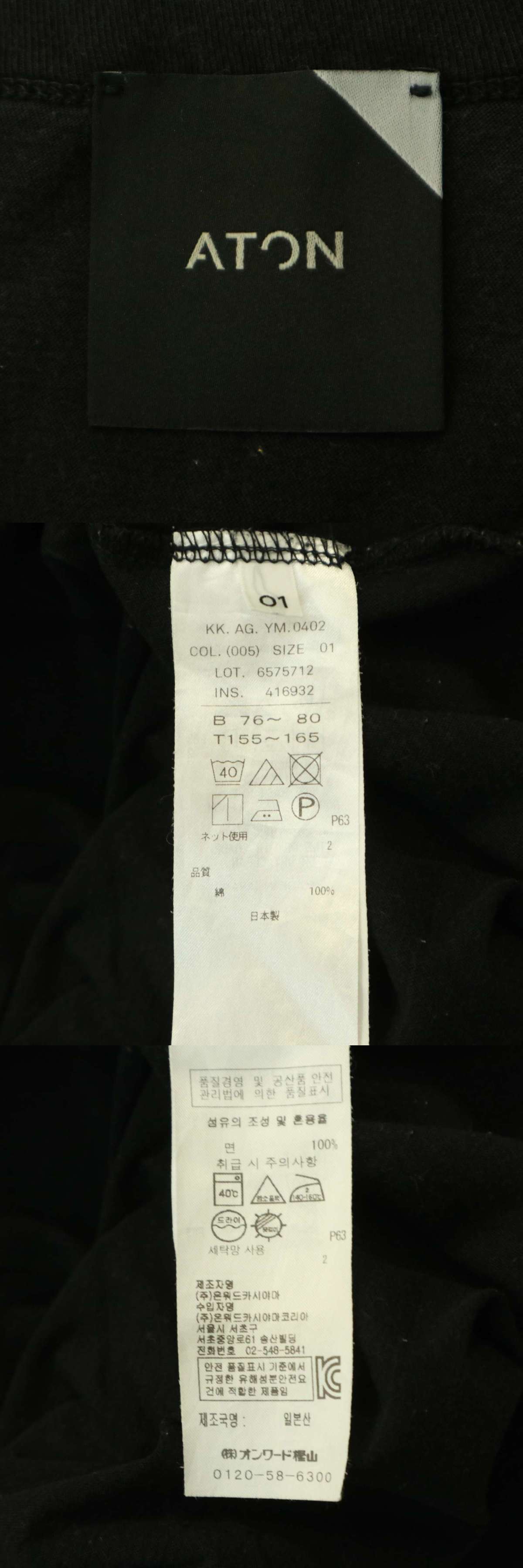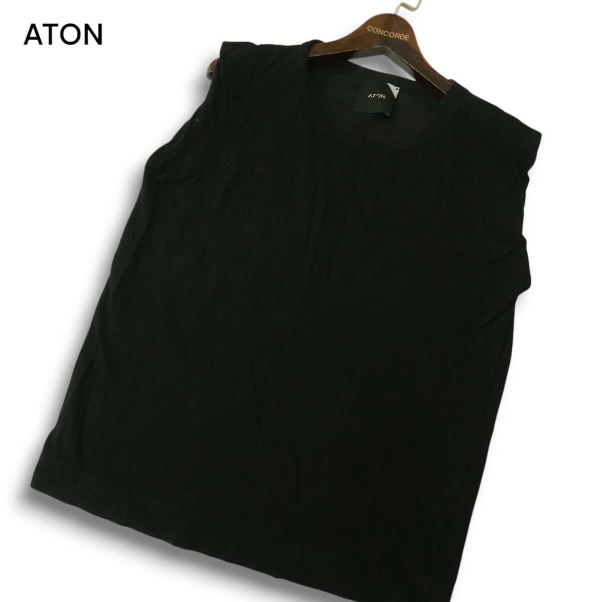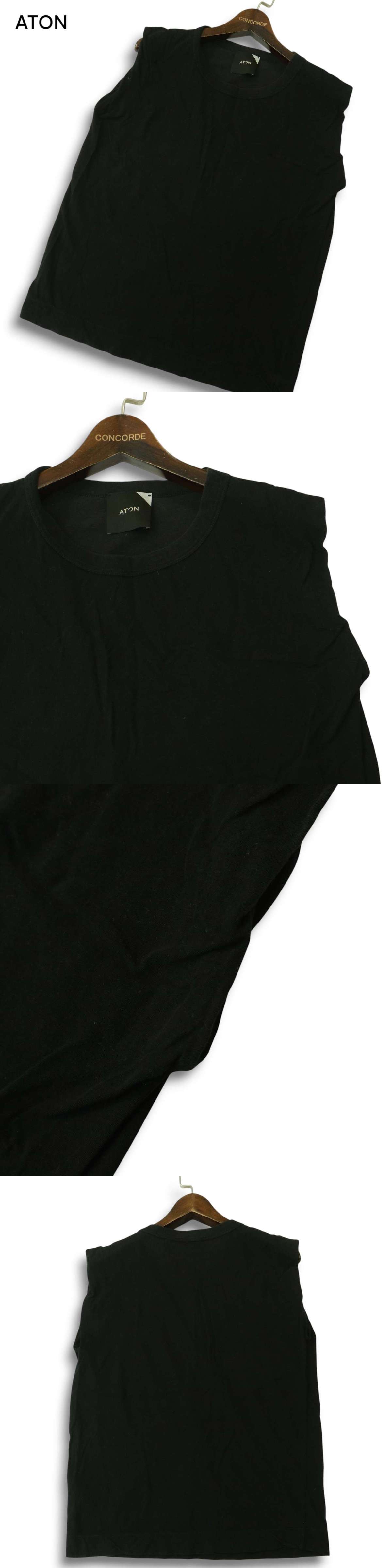 ATON エイトン 春夏★ノースリーブ カットソー タンクトップ Sz.1 メンズ 黒 日本製