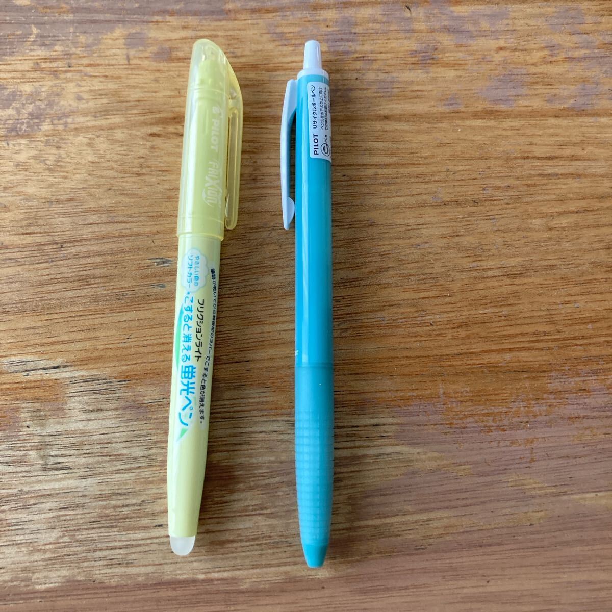 イエローの蛍光ペンとブルーのボールペンのセットで、文房具に最適なアイテムです。